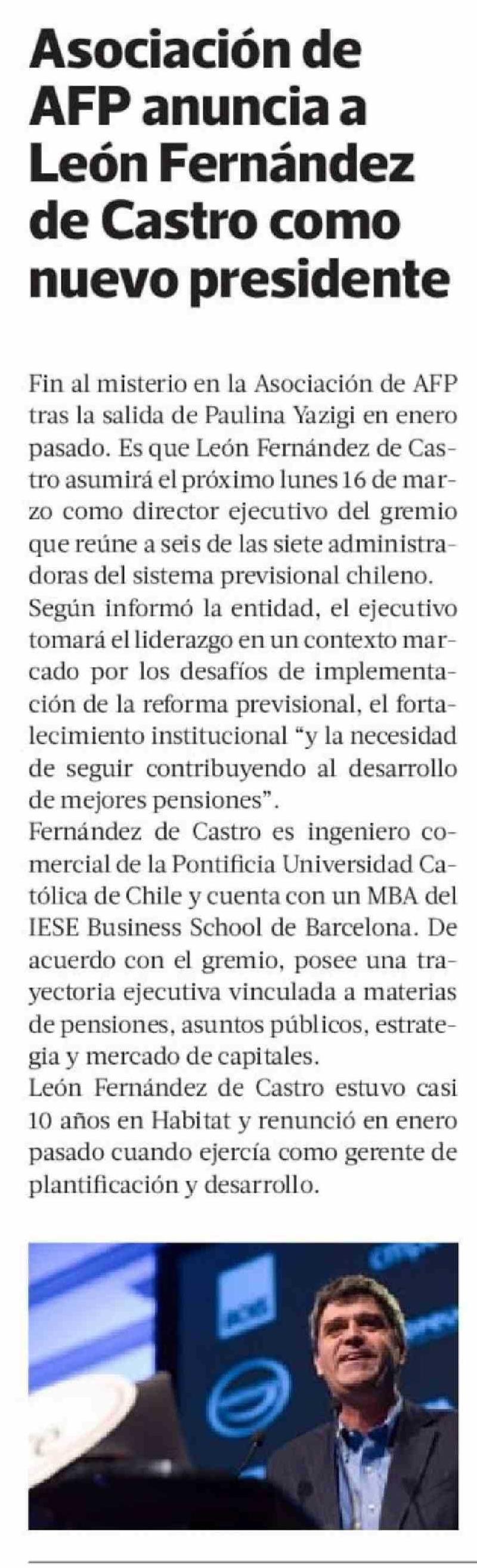 Asociación de AFP anuncia a León Fernández de Castro como nuevo presidente