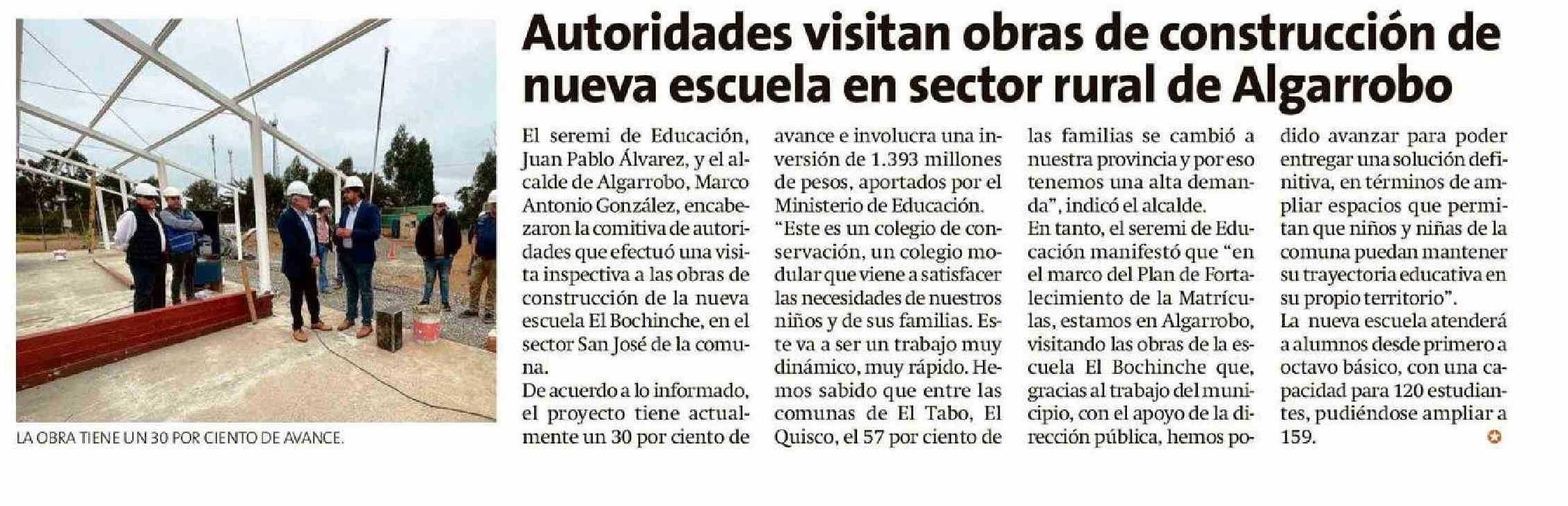 Autoridades visitan obras de construcción de nueva escuela en sector rural de Algarrobo