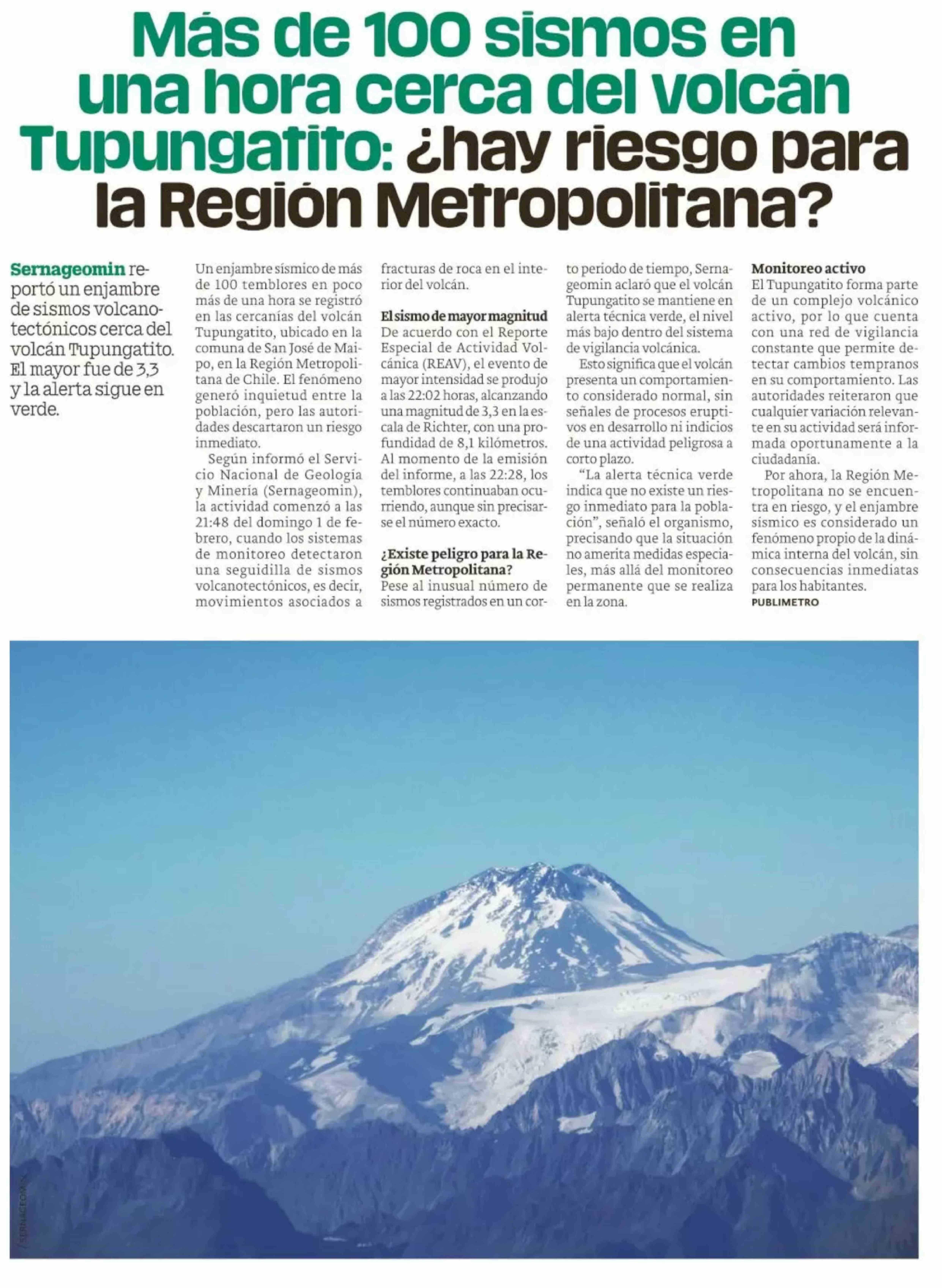 Mas de 100 sismos en una hora cerca del volcan Tupungatito: ¿ hay riesgo para la Region Metropolitana?