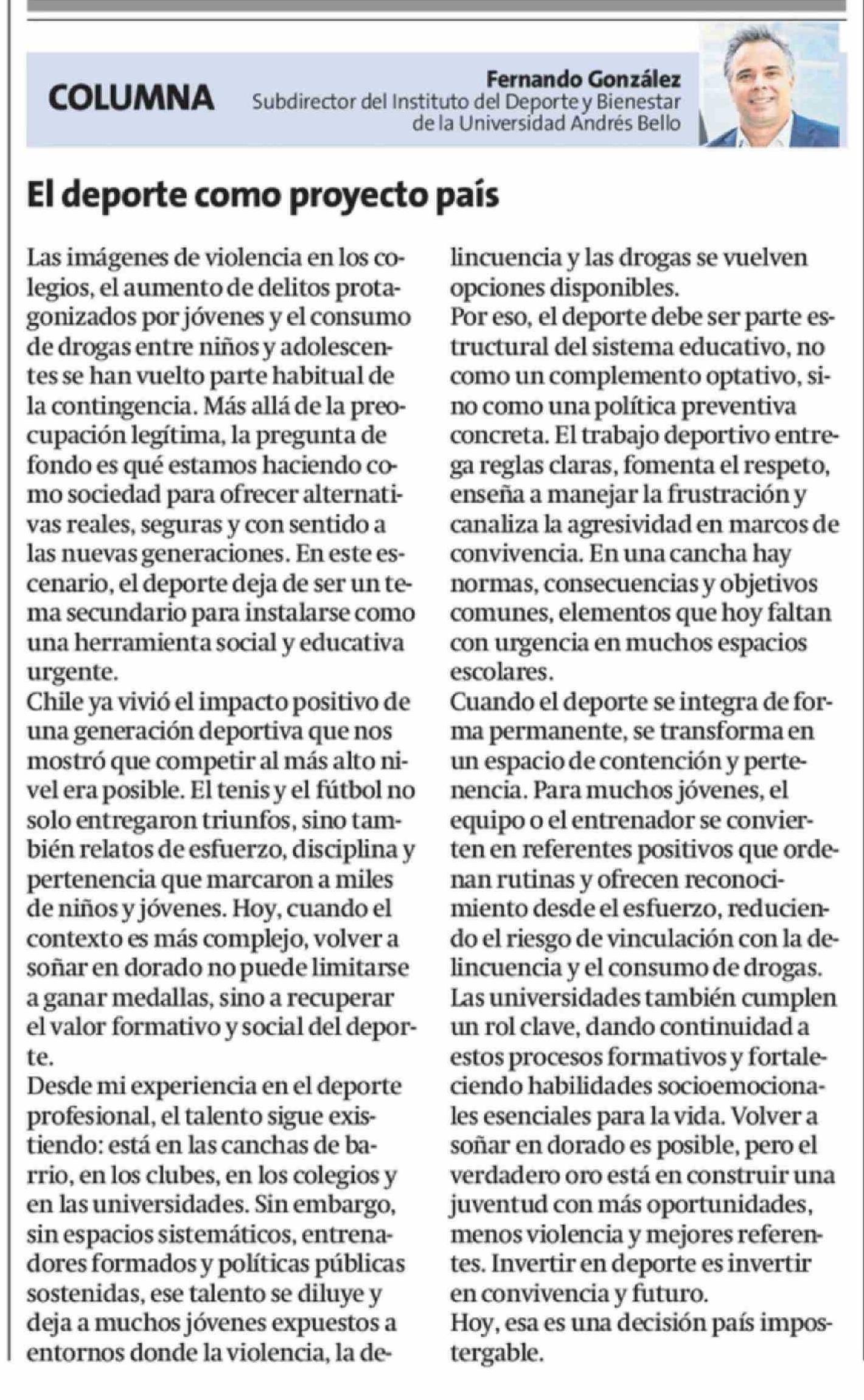Columnas de Opinión: El deporte como proyecto país