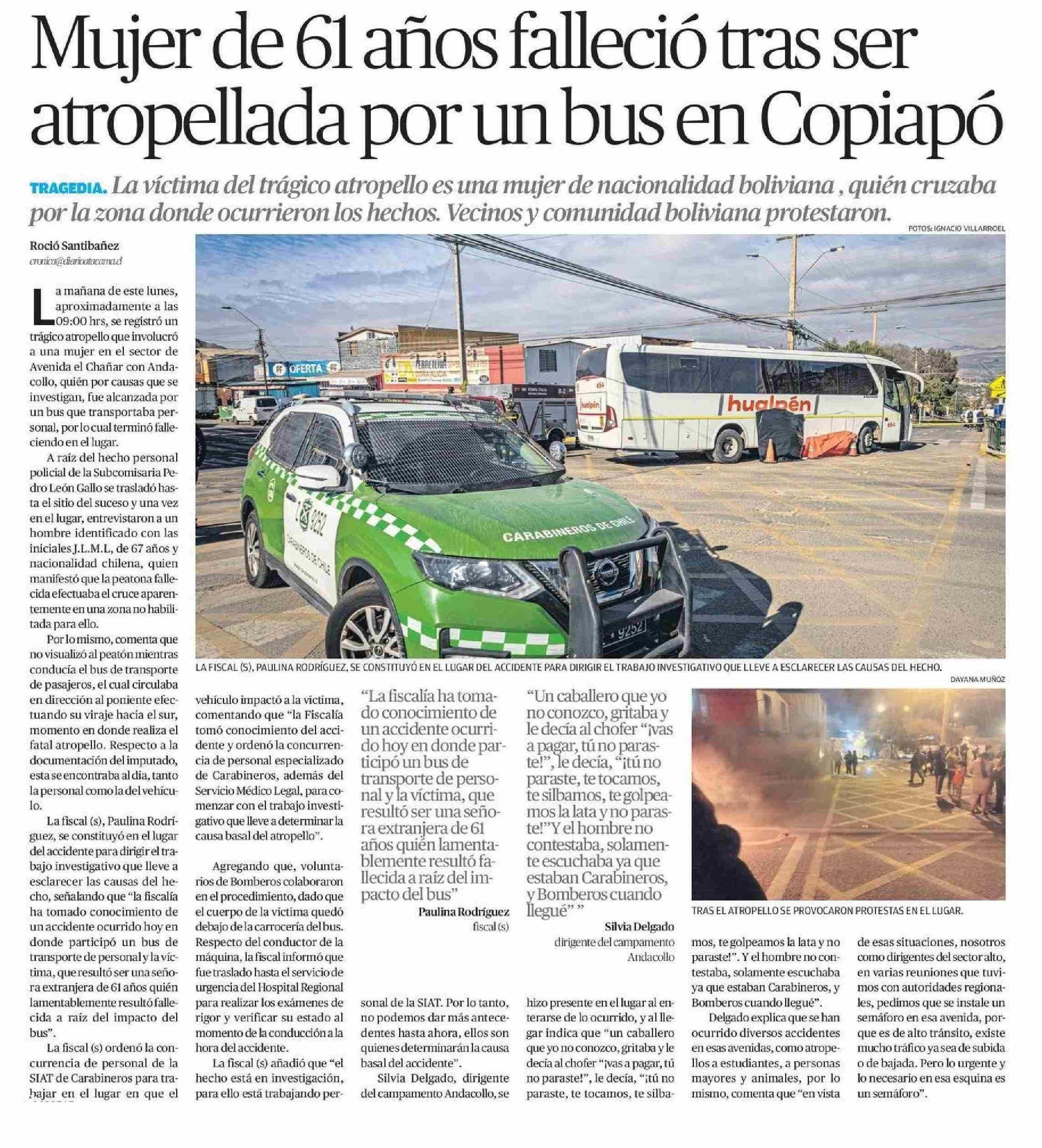 Mujer de 61 años falleció tras ser atropellada por un bus en Copiapó