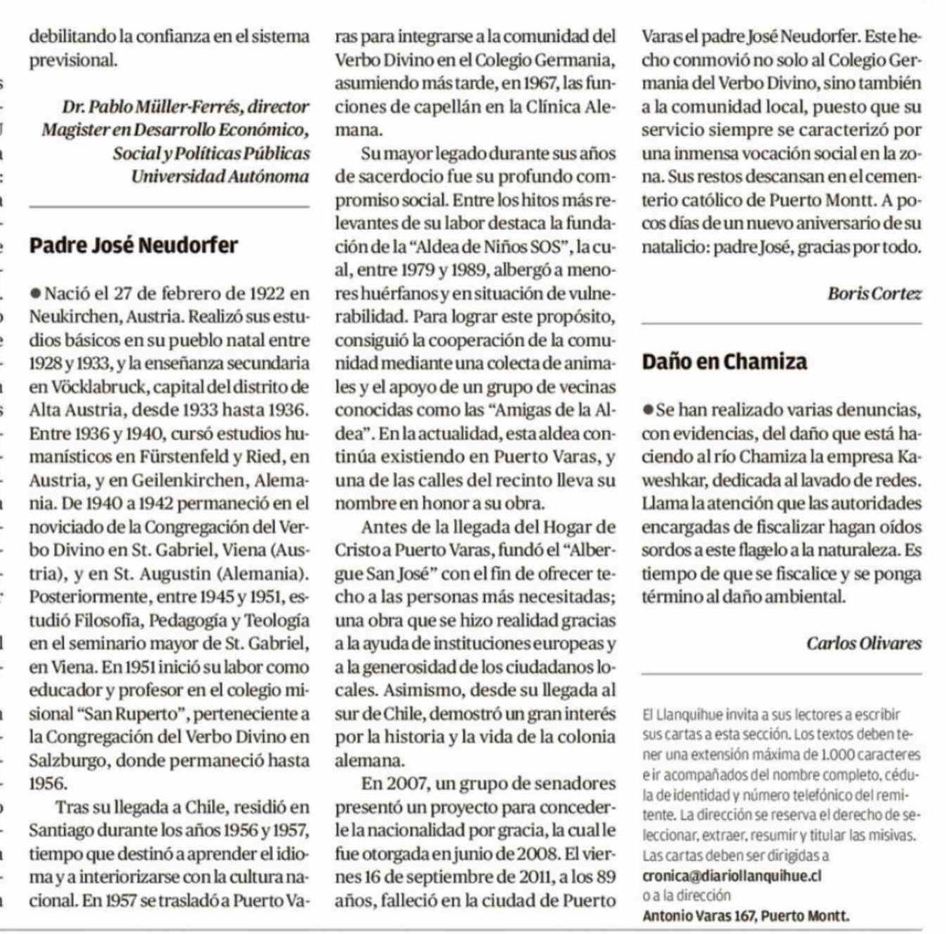 Cartas: Padre José Neudorfer