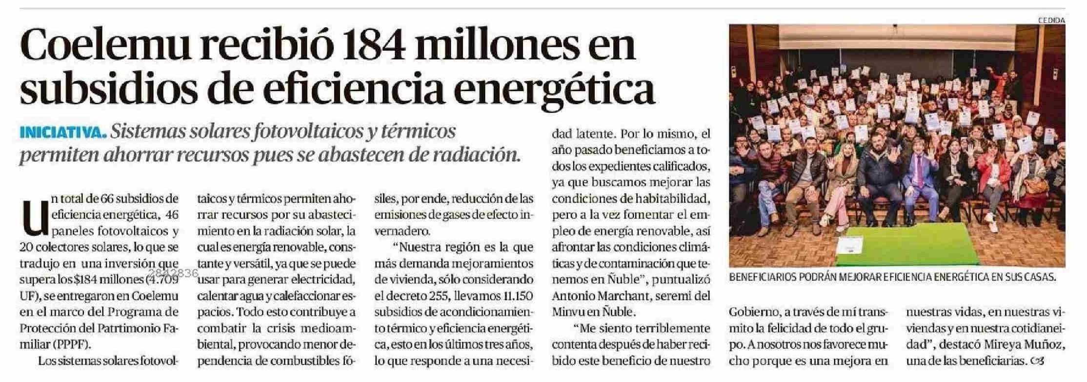Coelemu recibió 184 millones en subsidios de eficiencia energética