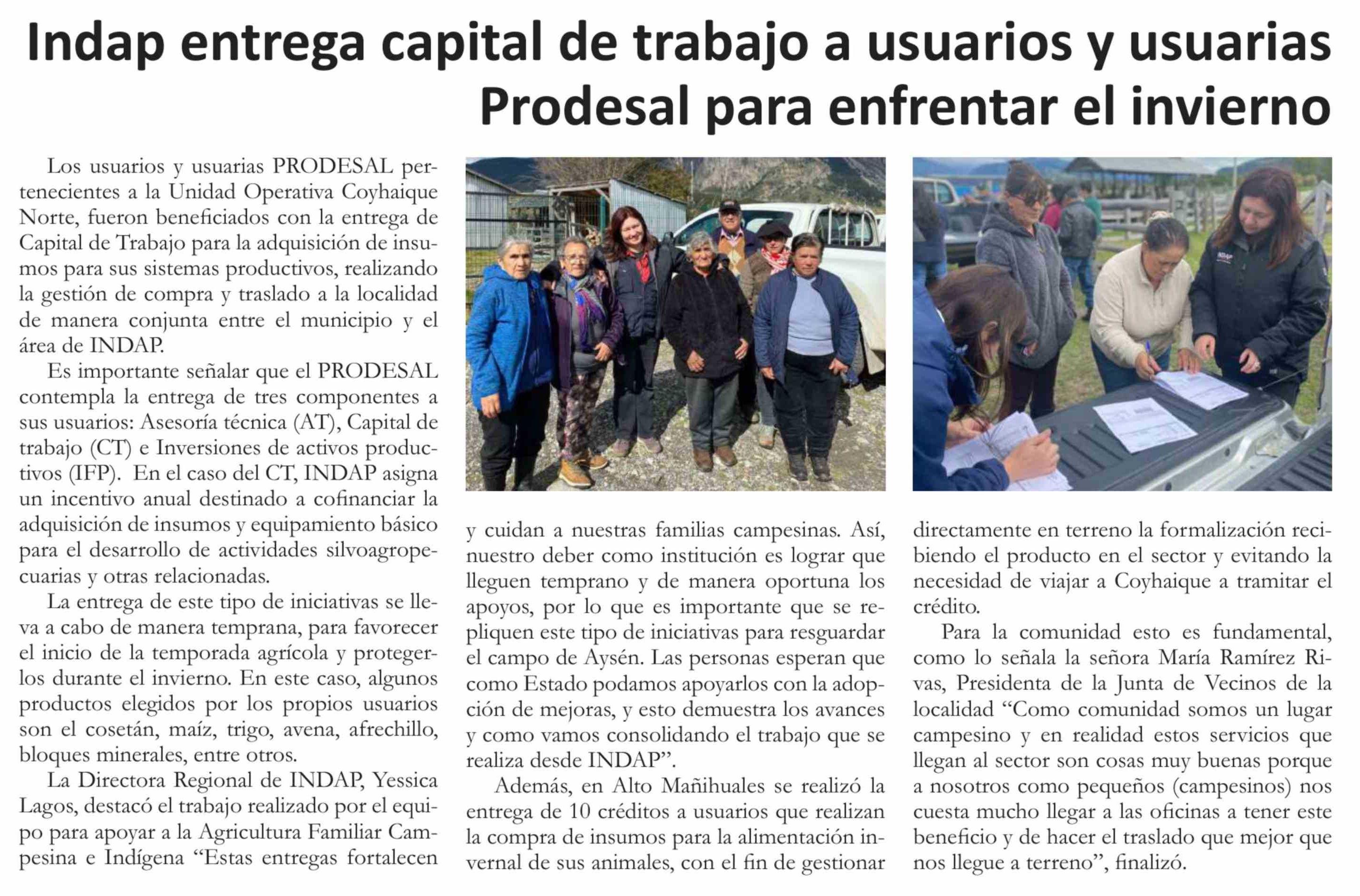 Indap entrega capital de trabajo a usuarios y usuarias Prodesal para enfrentar el invierno