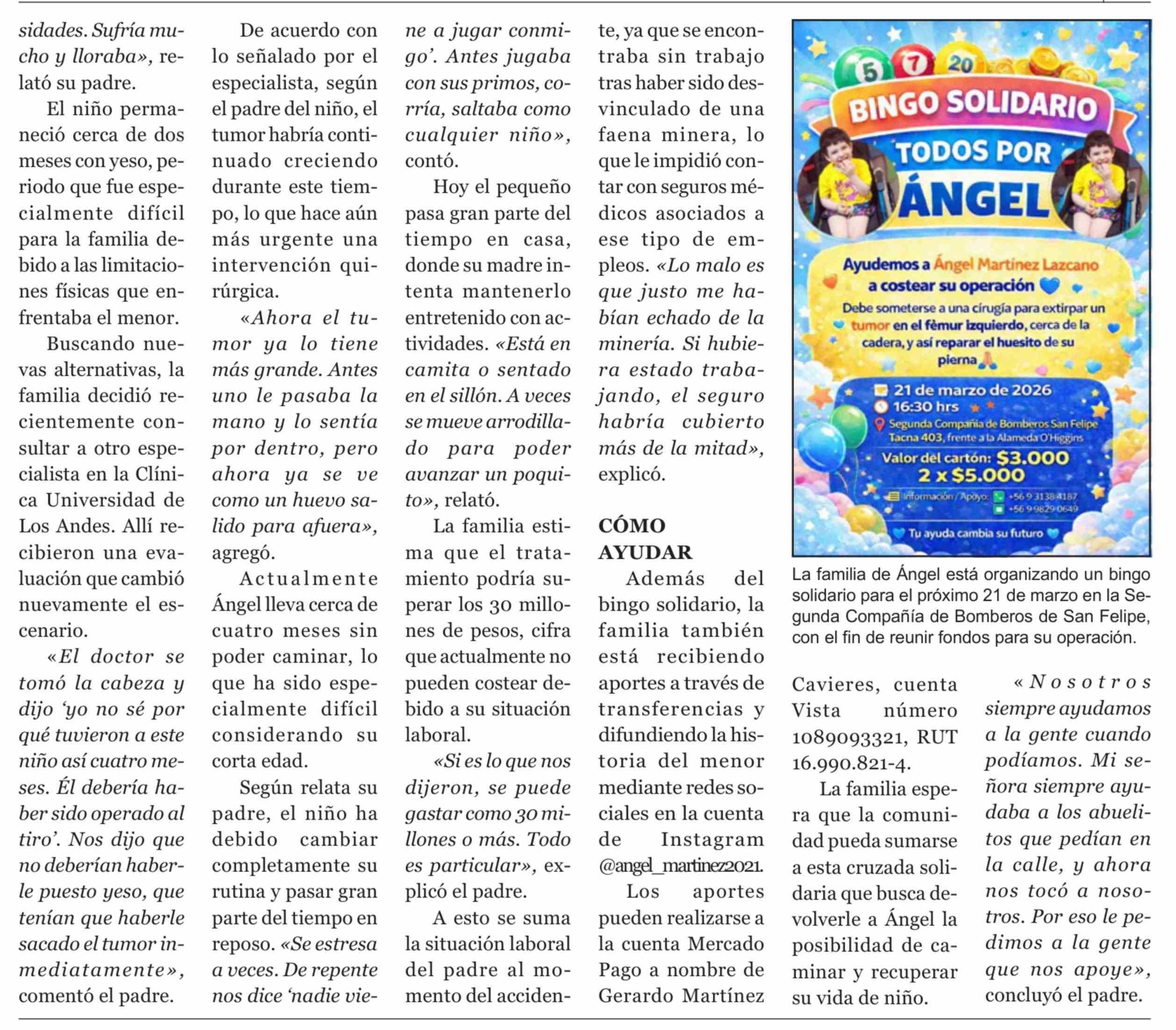 Bingo solidario busca ayudar a pequeño Ángel a costear urgente operación tras complejo diagnóstico