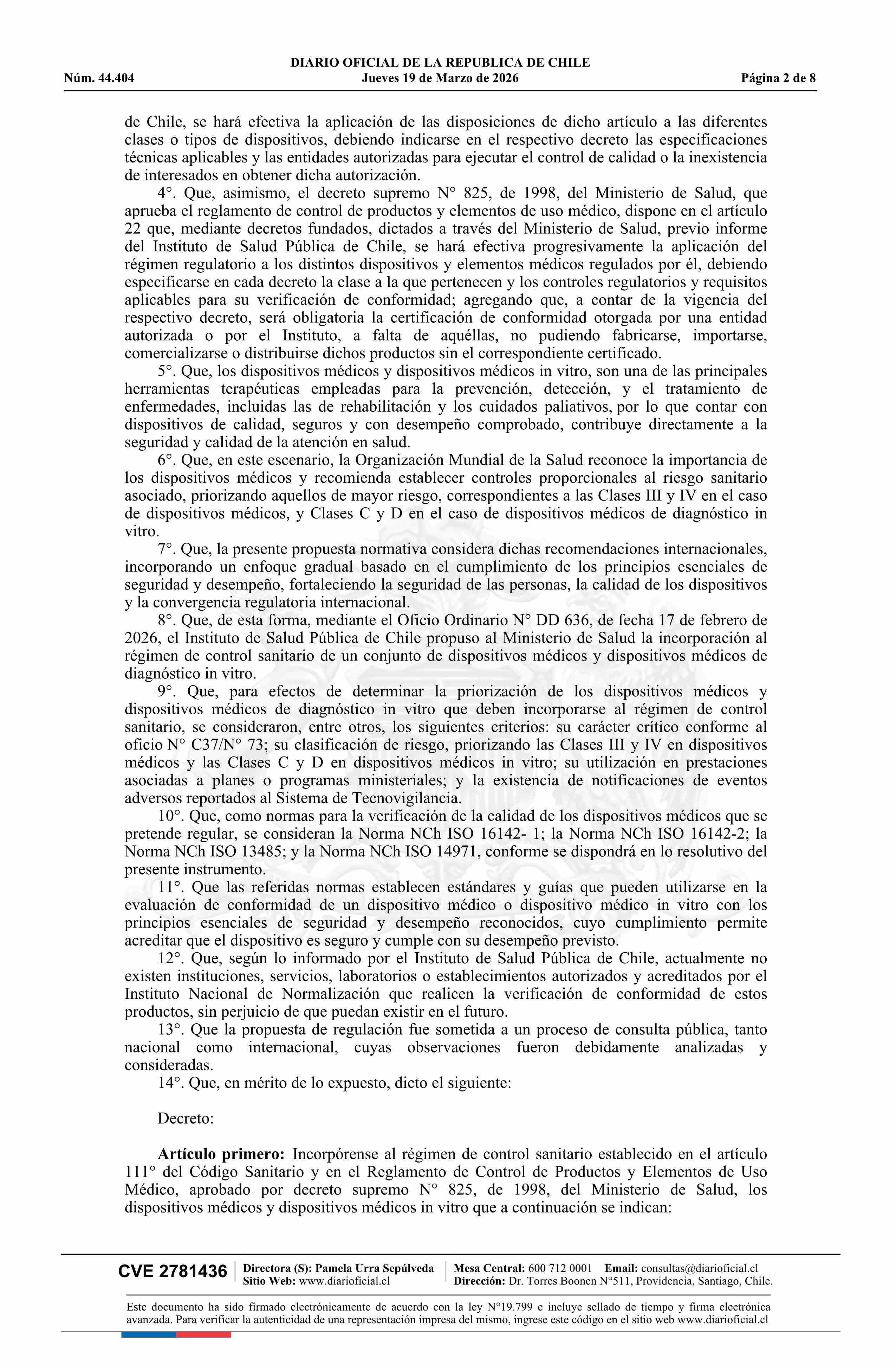 Título: Decreto exento número 25, de 2026.- Incorpora los dispositivos médicos y dispositivos médicos in vitro que se indican, al régimen de control sanitario establecido en el artículo 111° del Código Sanitario