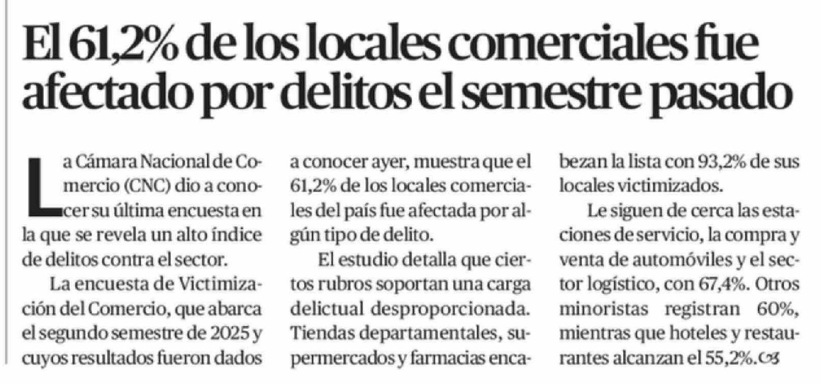 El 61,2% de los locales comerciales fue afectado por delitos el semestre pasado