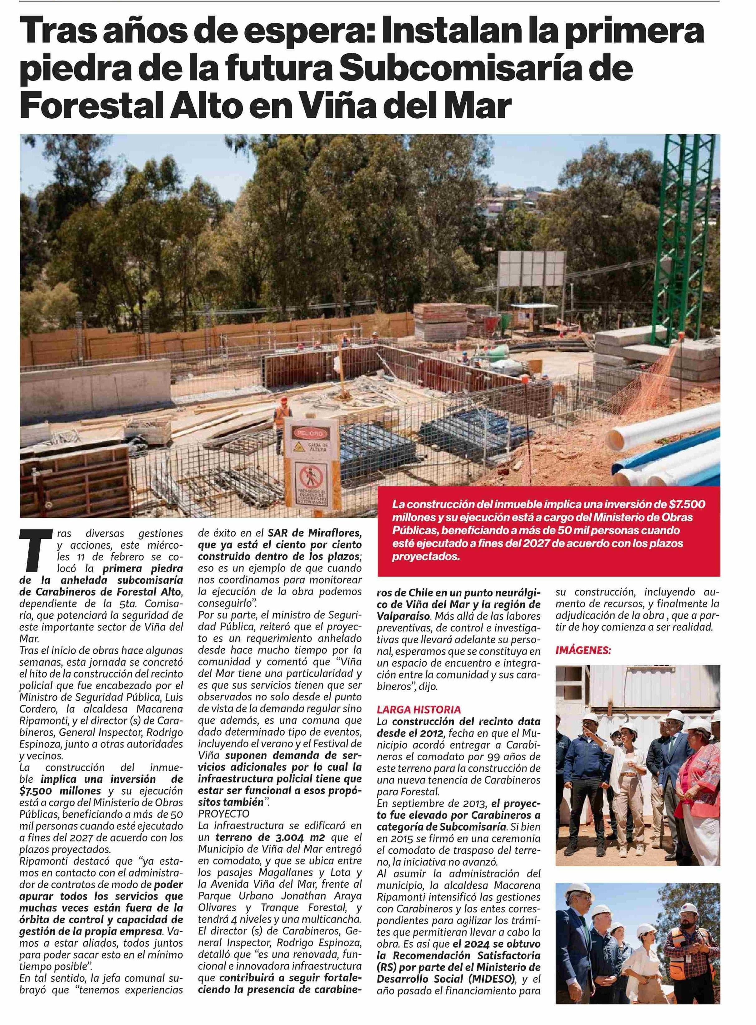 Tras años de espera: Instalan la primera piedra de la futura Subcomisaría de Forestal Alto en Viña del Mar