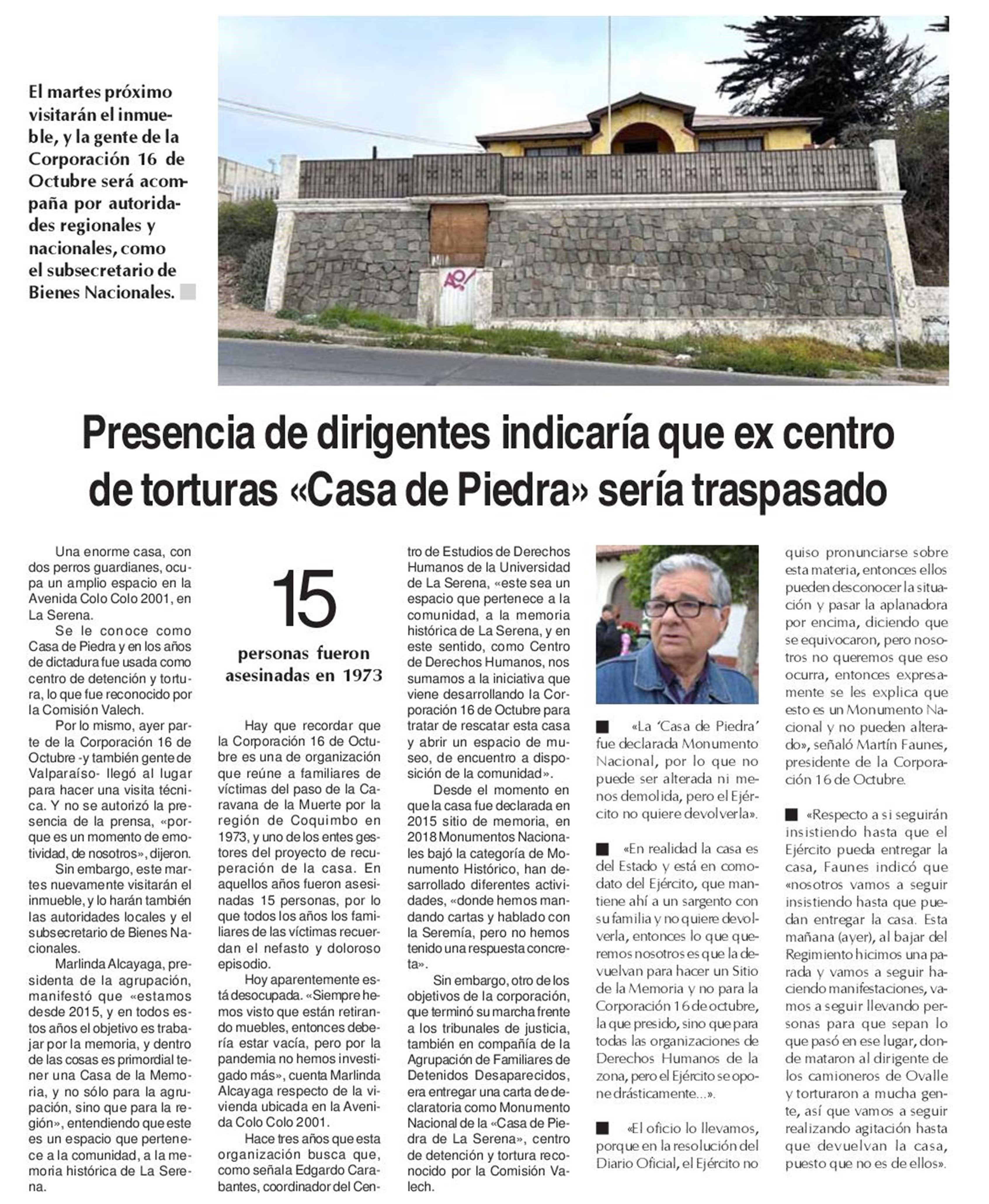 Presencia de dirigentes indicaría que ex centro de torturas «Casa de Piedra» sería traspasado