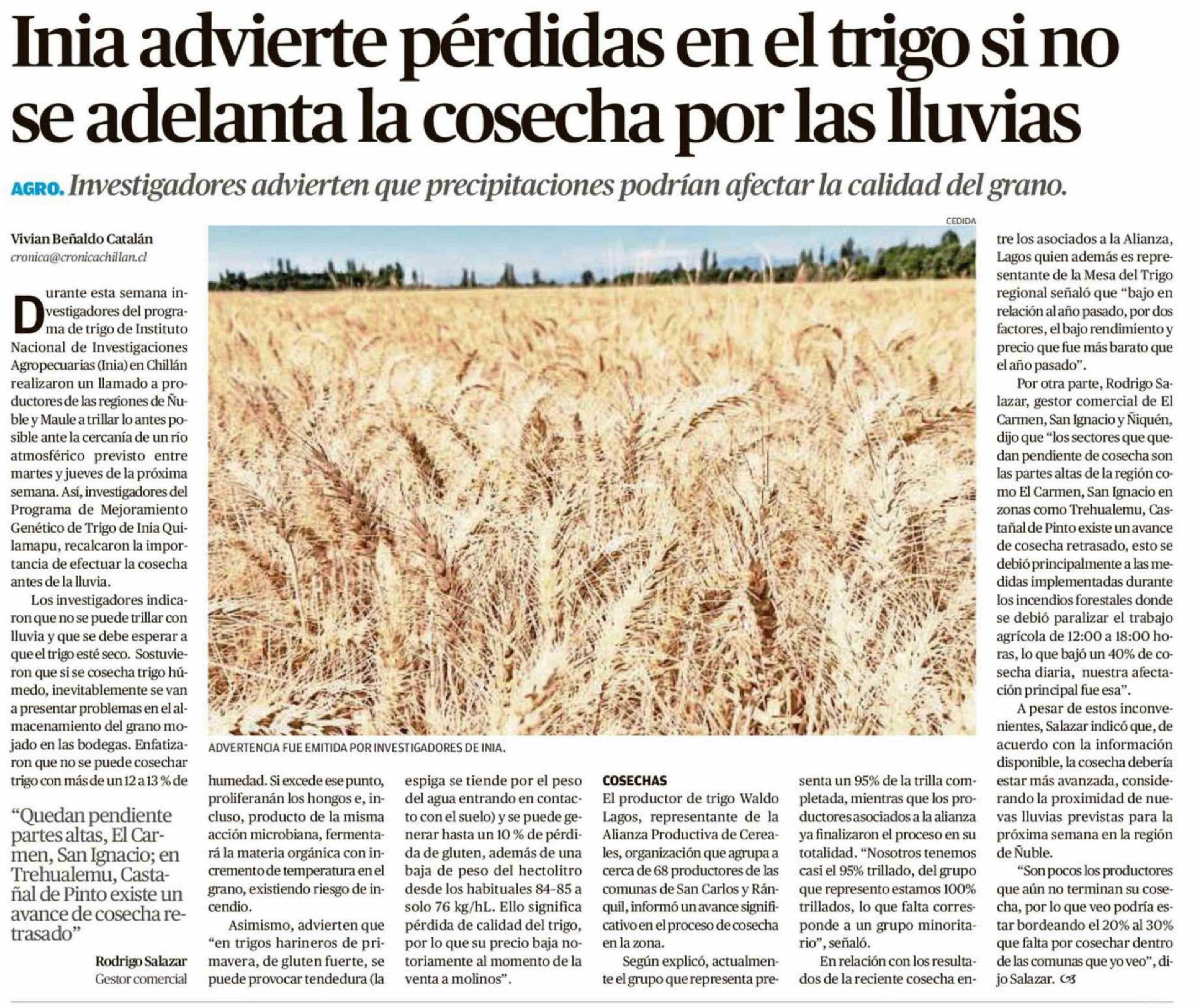 Inia advierte pérdidas en el trigo si no se adelanta la cosecha por las lluvias