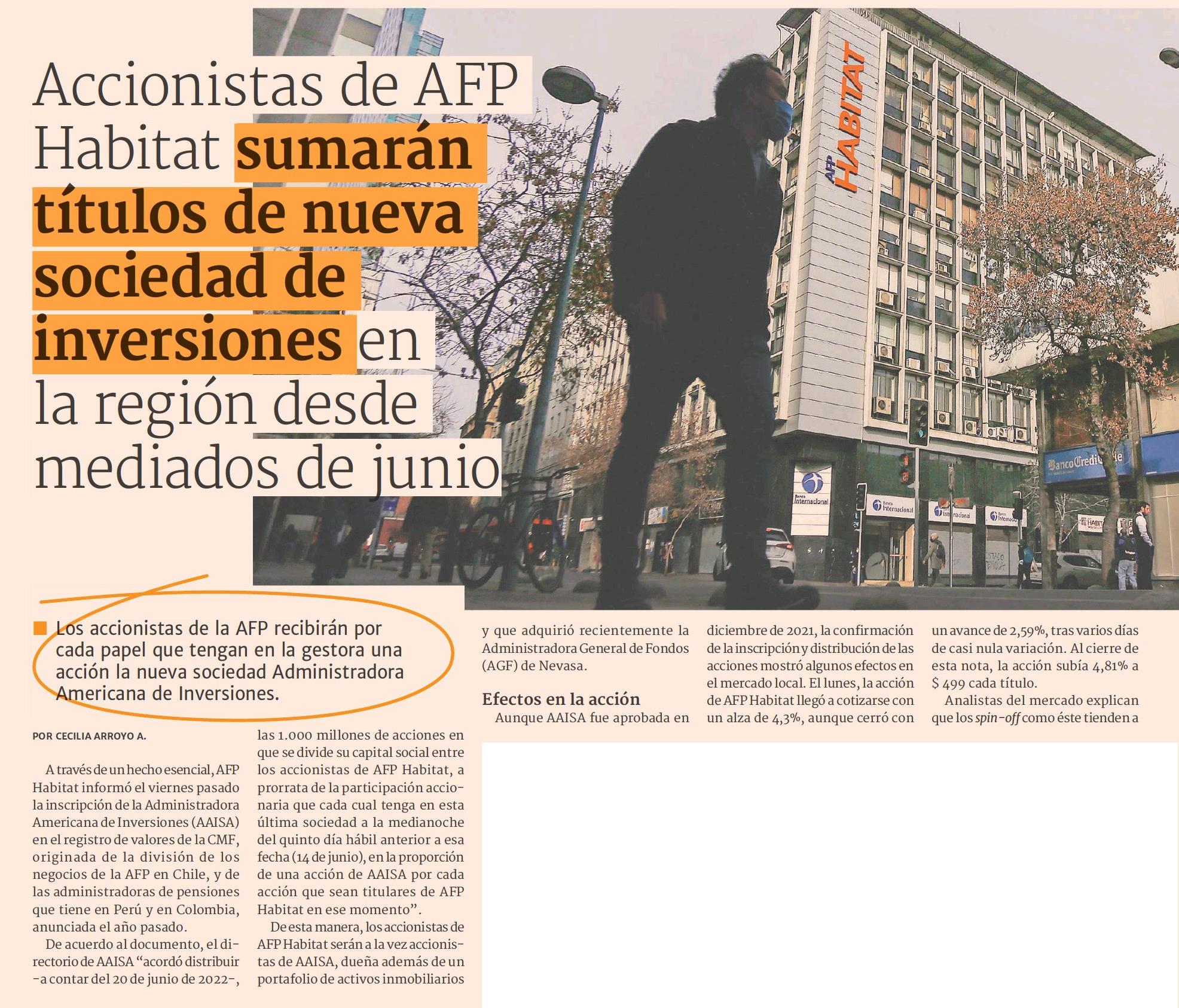 Accionistas de AFP Habitat sumarán títulos de nueva sociedad de inversiones en la región desde mediados de junio