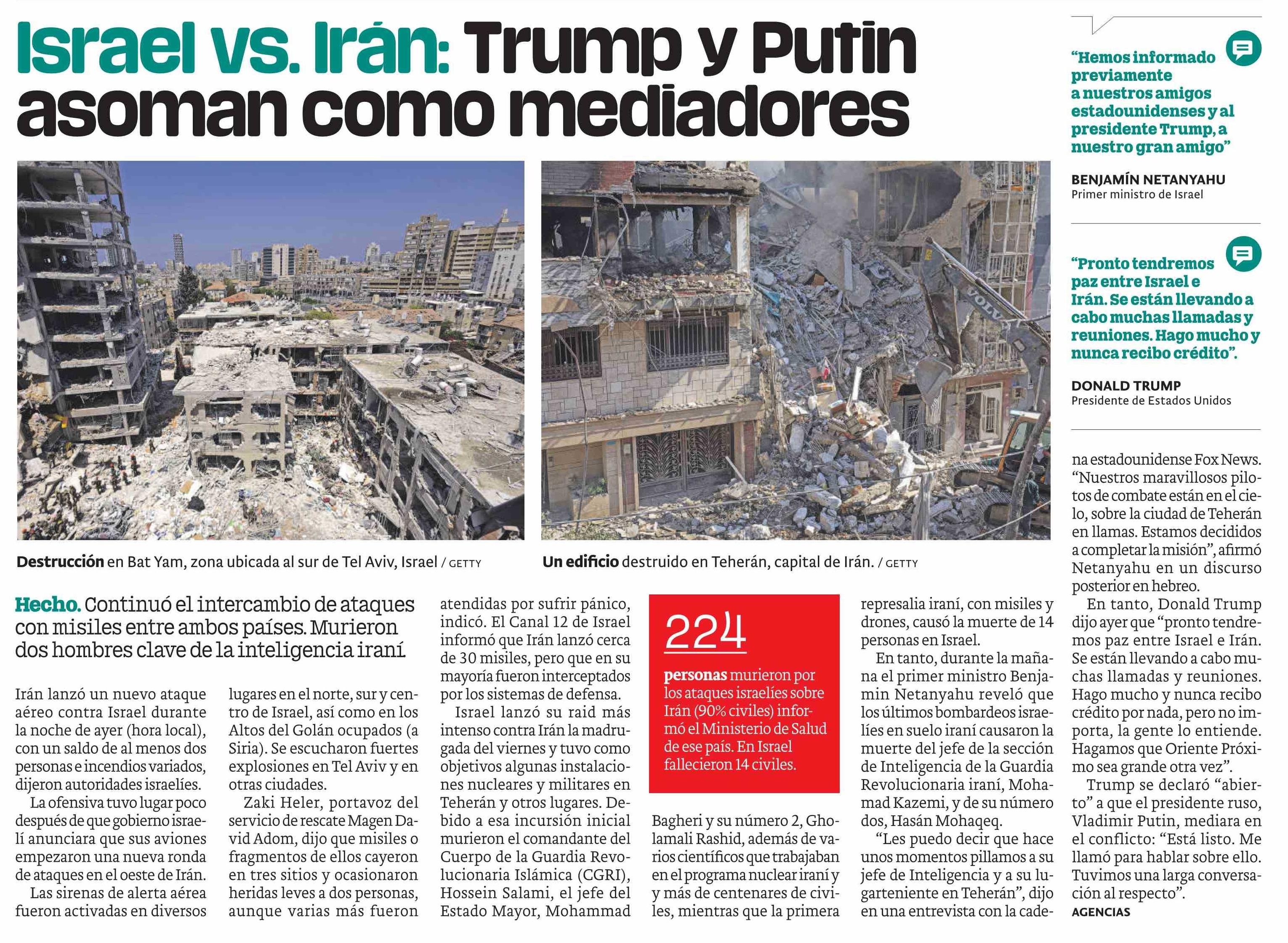 Israel vs. Irán: Trump y Putin asoman como mediadores