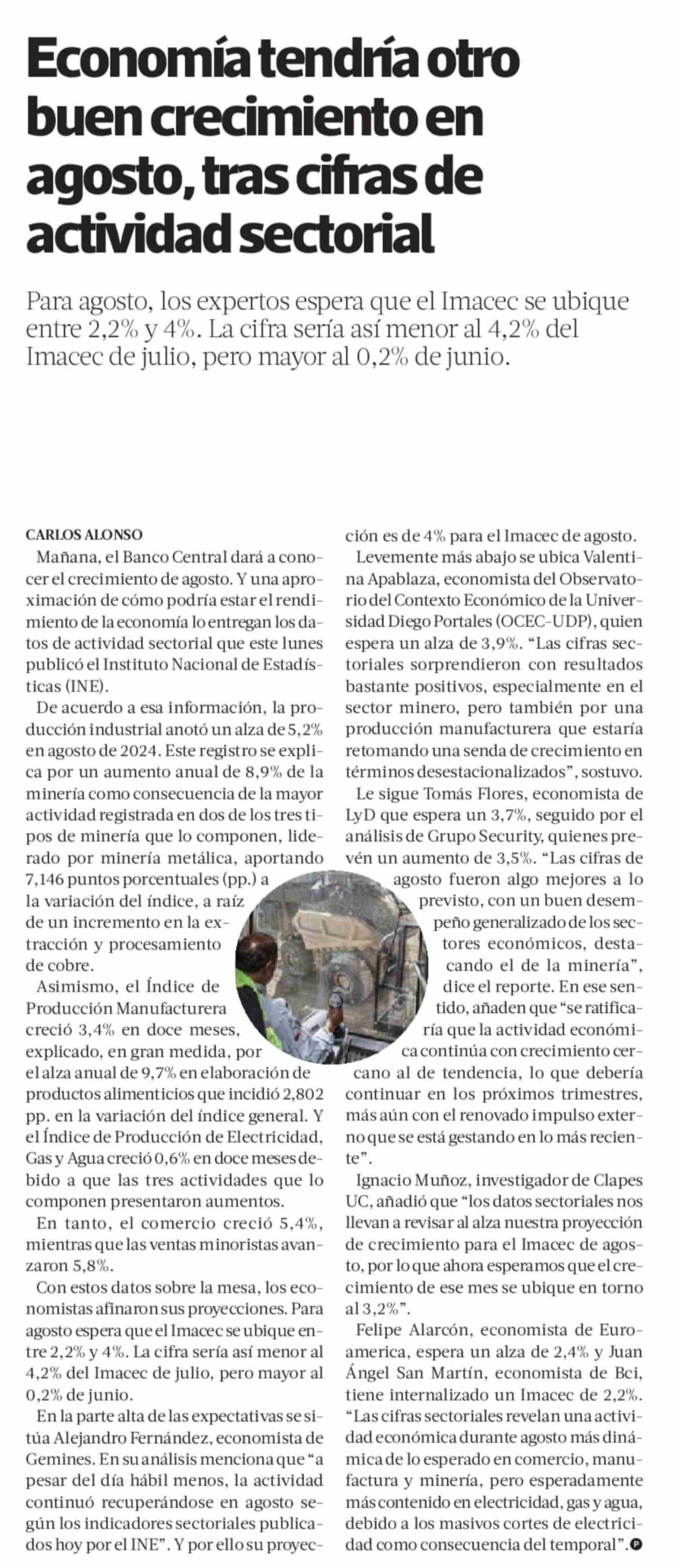 Economía tendría otro buen crecimiento en agosto, tras cifras de actividad sectorial