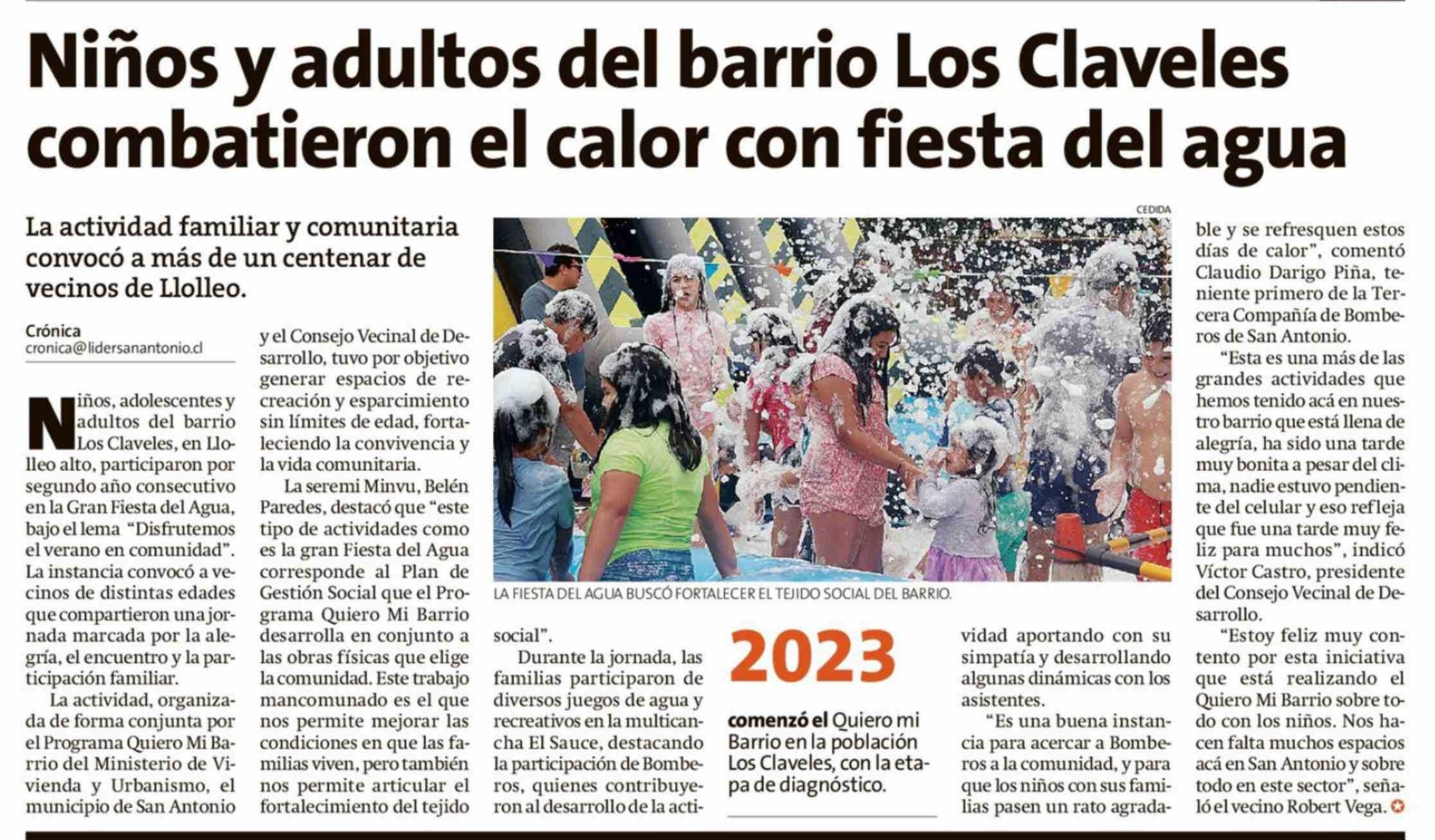 Niños y adultos del barrio Los Claveles combatieron el calor con fiesta del agua