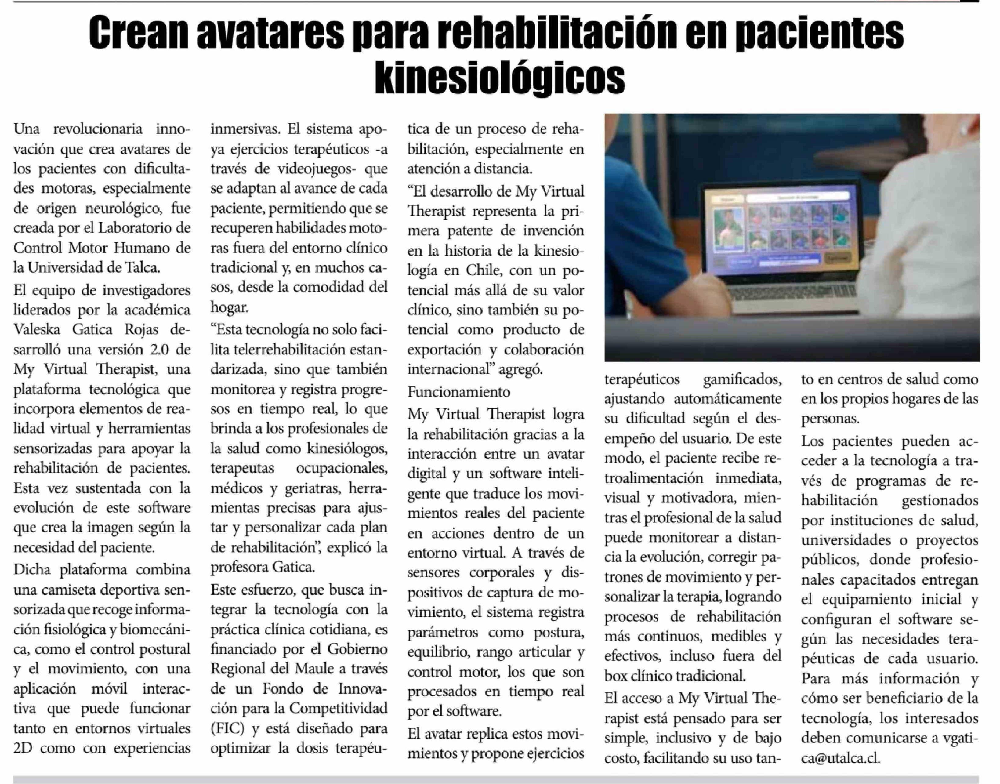 Título: Crean avatares para rehabilitación en pacientes kinesiológicos