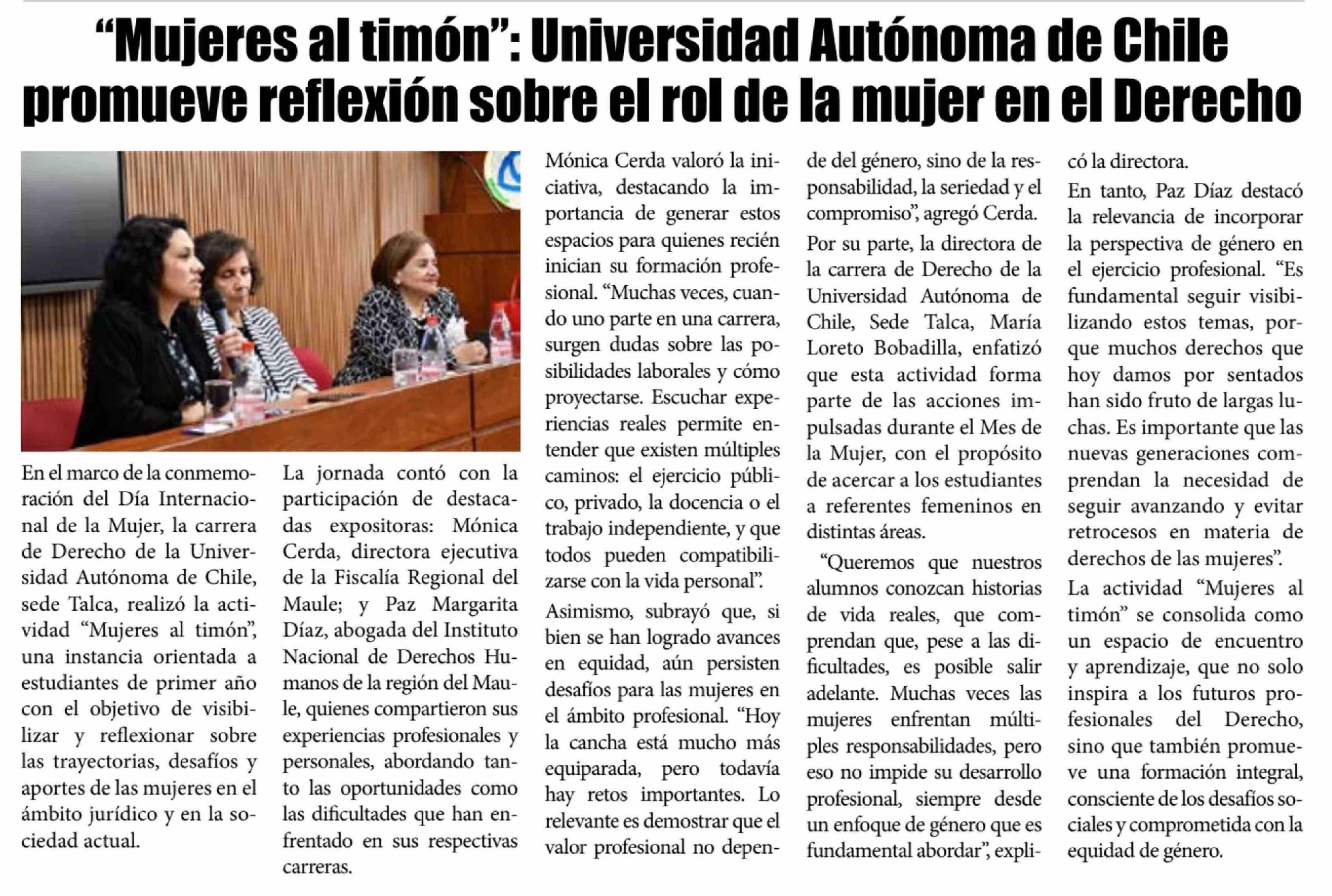 "Mujeres al timón": Universidad Autónoma de Chile promueve reflexión sobre el rol de la mujer en el Derecho