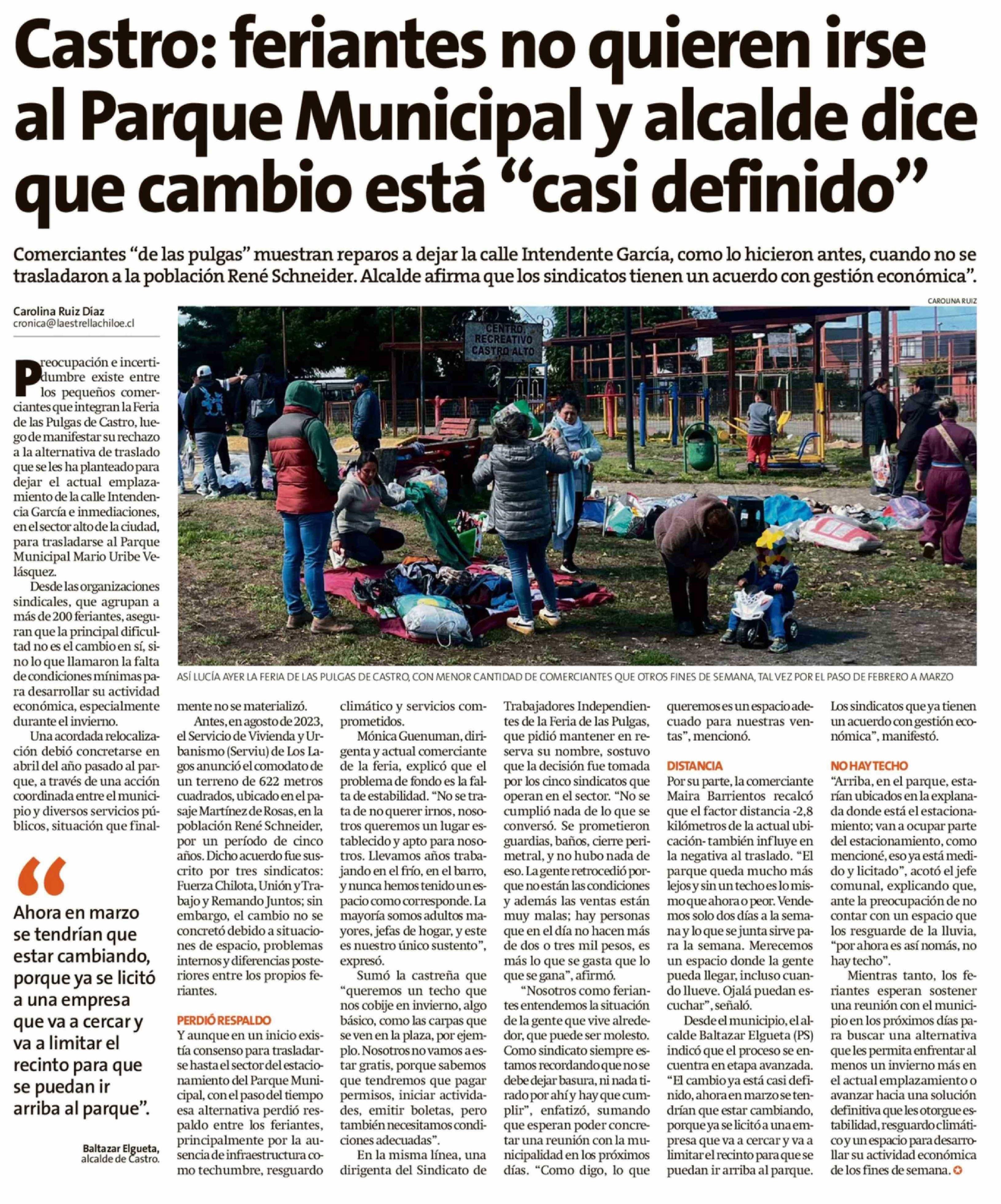 Castro: feriantes no quieren irse al Parque Municipal y alcalde dice que cambio está "casi definido"