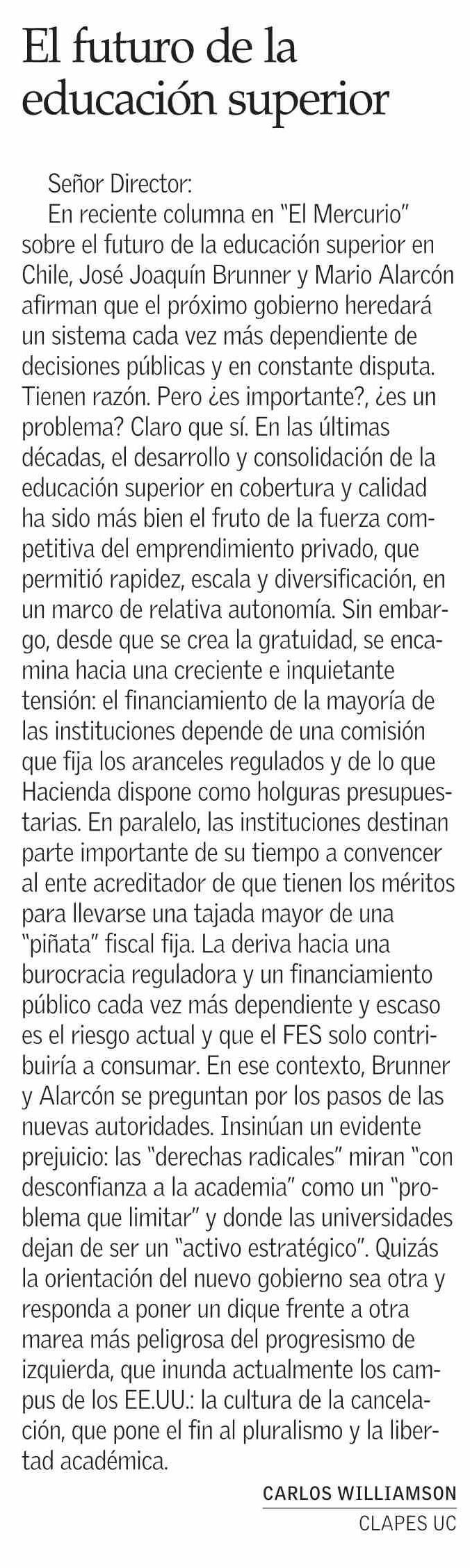 Cartas: El futuro de la educación superior