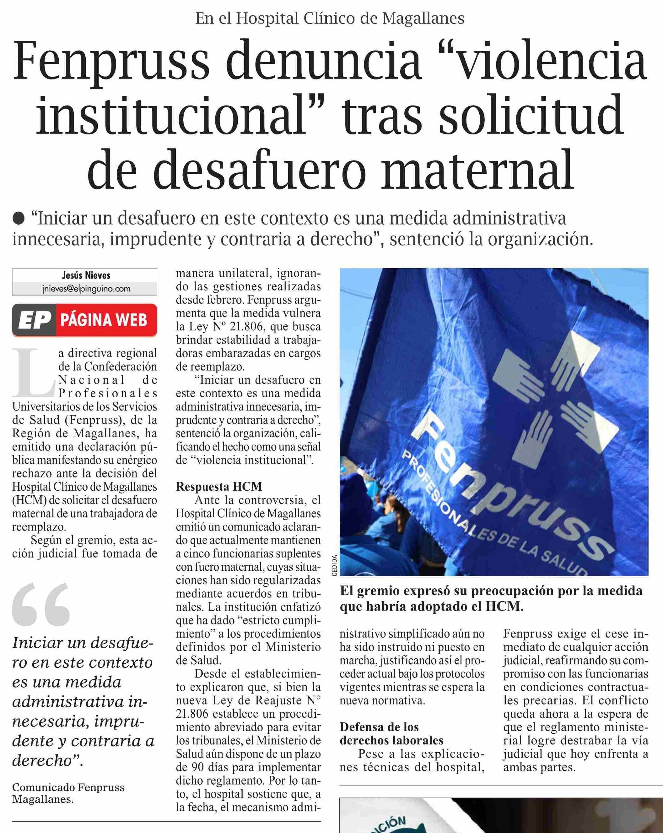 Título: Fenpruss denuncia “violencia institucional” tras solicitud de desafuero maternal