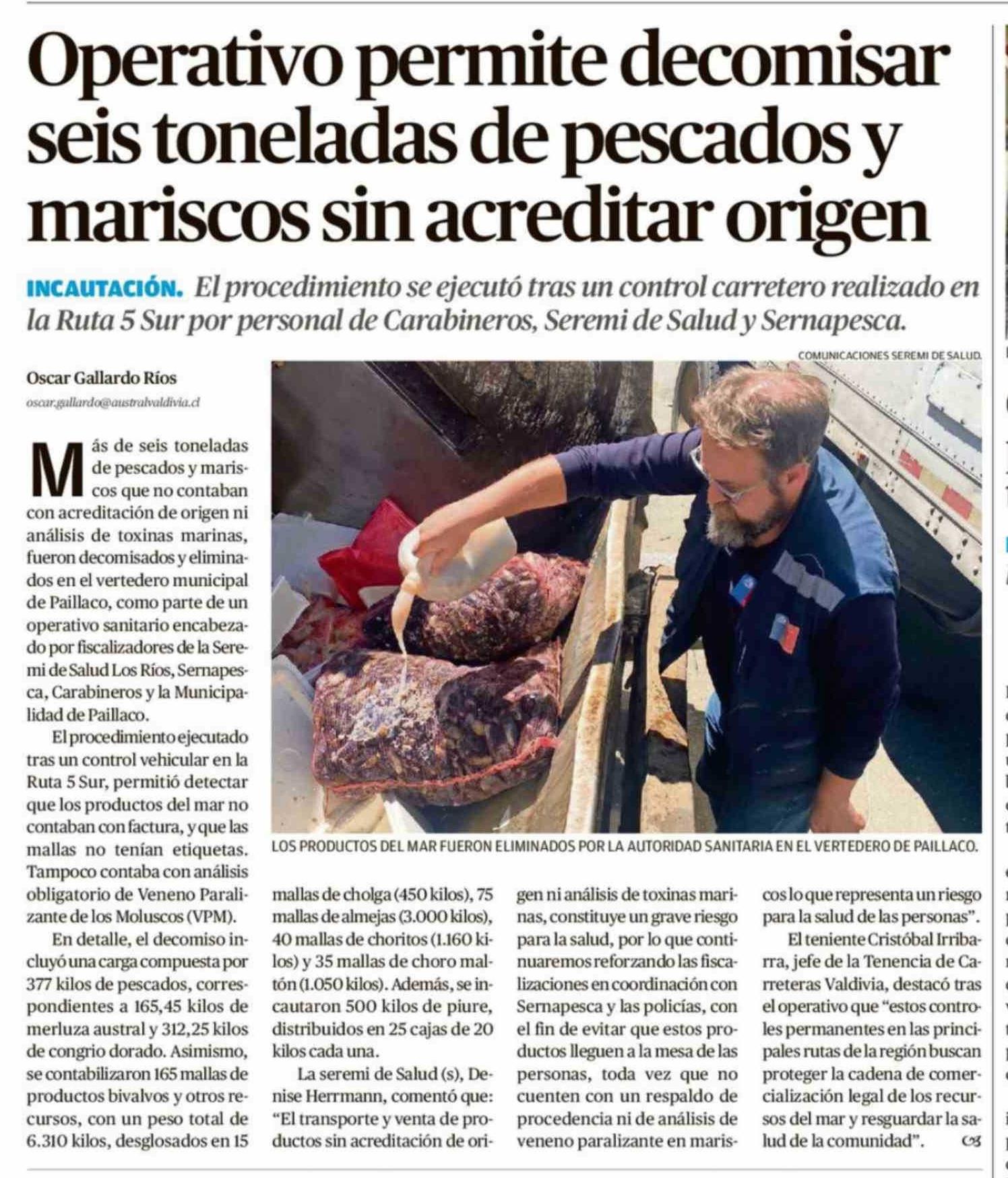 Operativo permite decomisar seis toneladas de pescados y mariscos sin acreditar origen