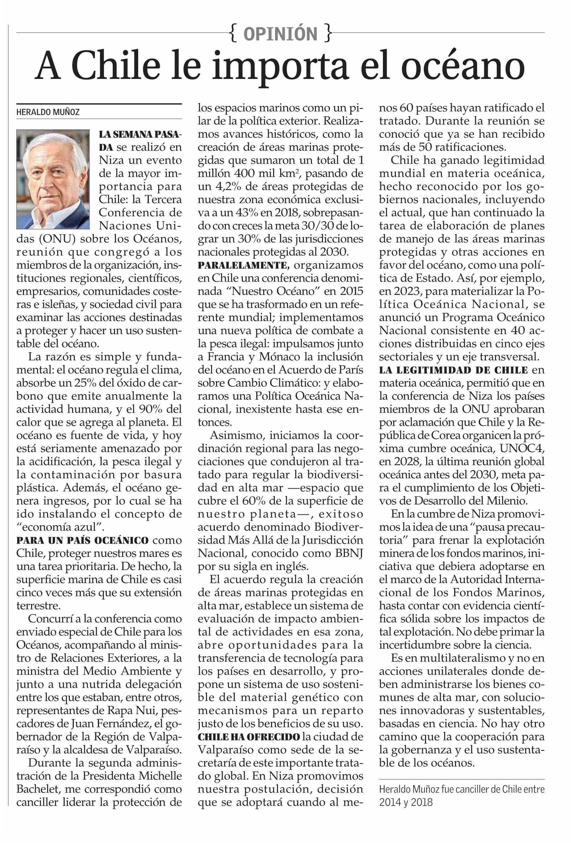 Título: COLUMNAS DE OPINIÓN: A Chile le importa el océano