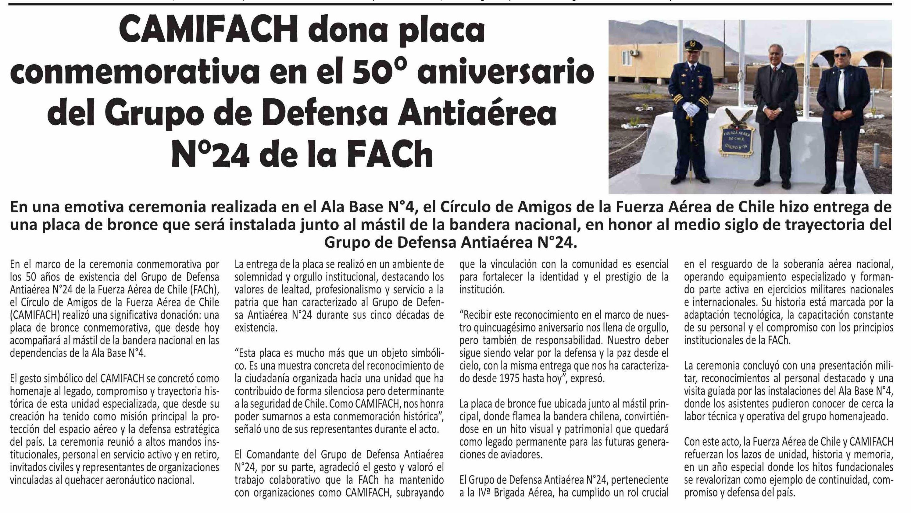 CAMIFACH dona placa conmemorativa en el 50° aniversario del Grupo de Defensa Antiaérea N°24 de la FACh