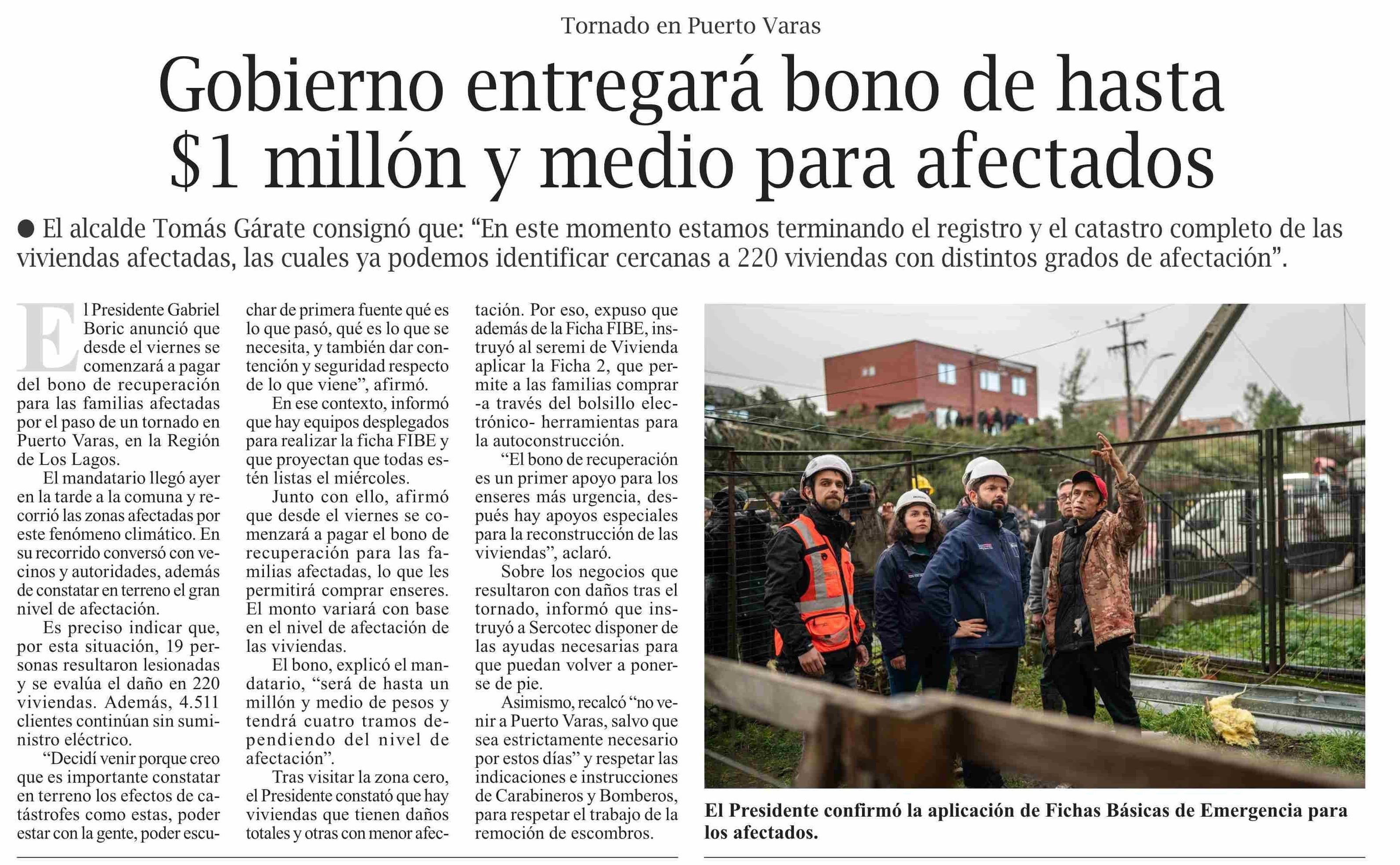 Gobierno entregará bono de hasta $1 millón y medio para afectados