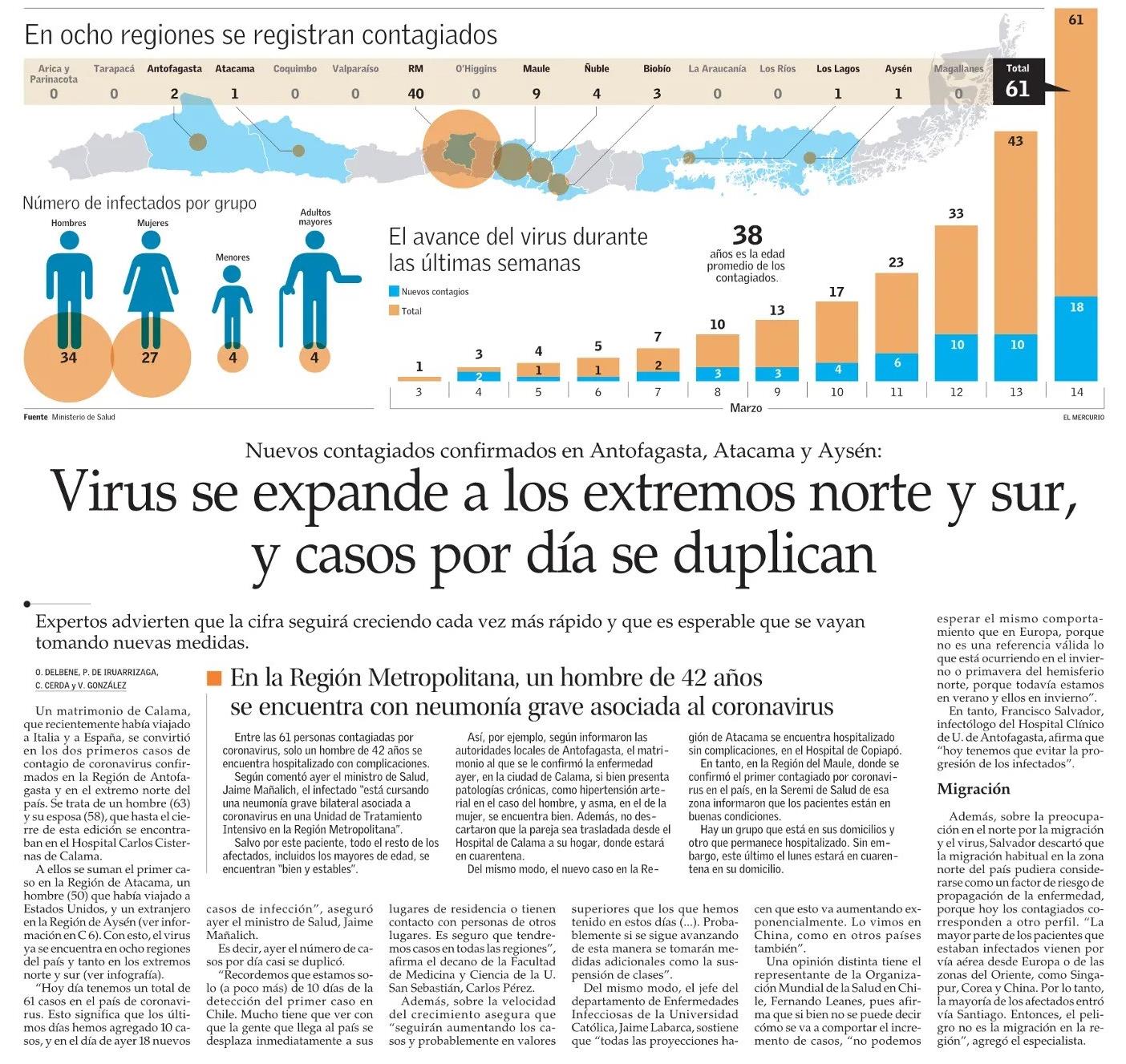 Virus se expande a los extremos norte y sur, y casos por día se duplican