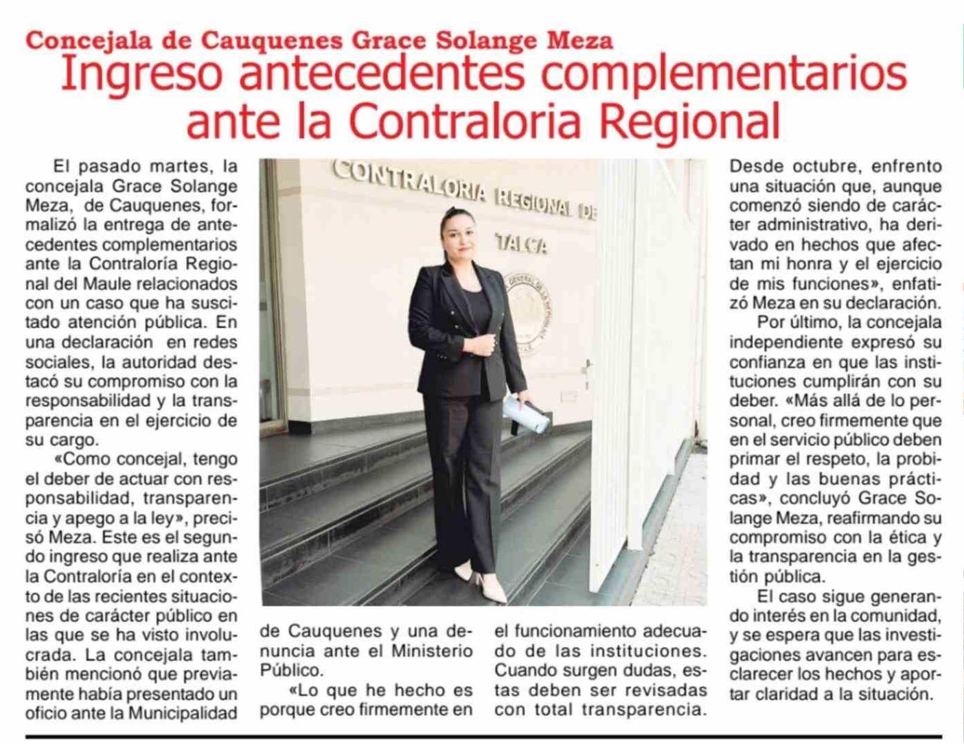 Ingreso antecedentes complementarios ante la Contraloria Regional