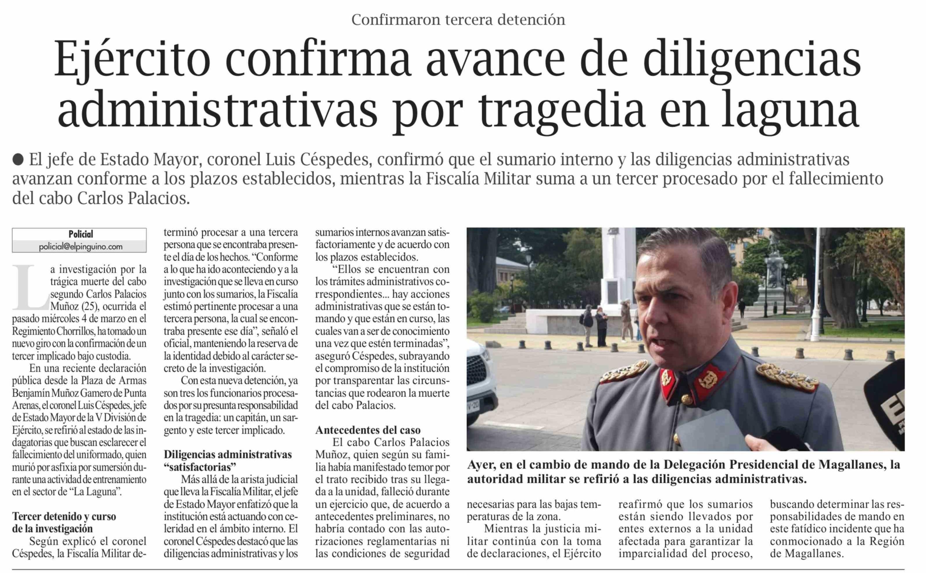 Ejército confirma avance de diligencias administrativas por tragedia en laguna