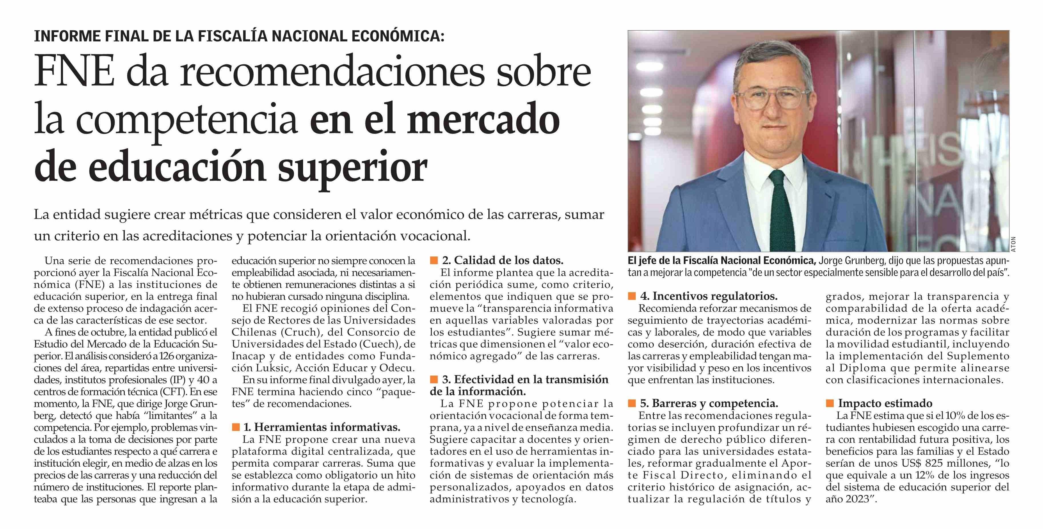 FNE da recomendaciones sobre la competencia en el mercado de educación superior