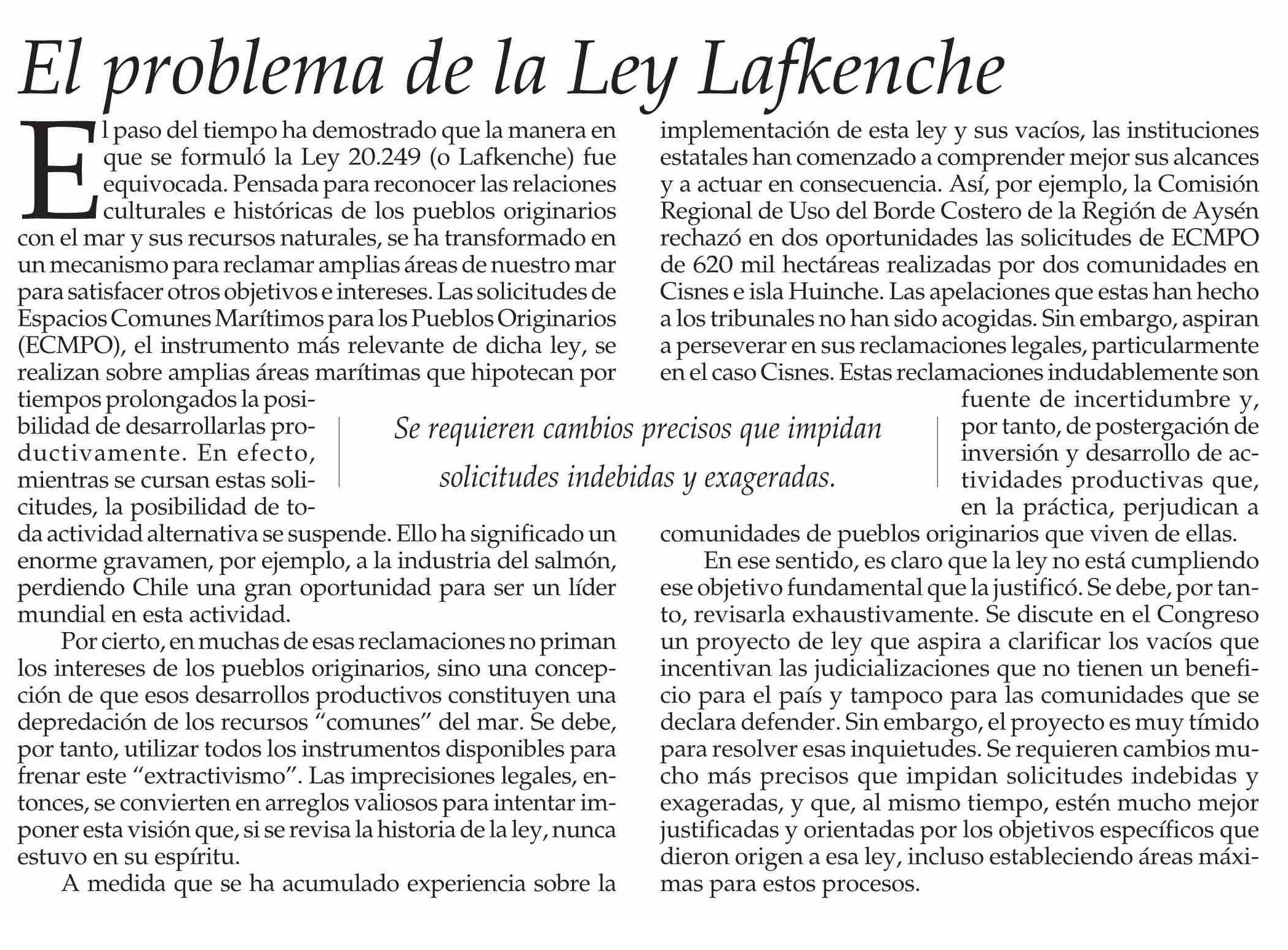 EDITORIAL: El problema de la Ley Lafkenche
