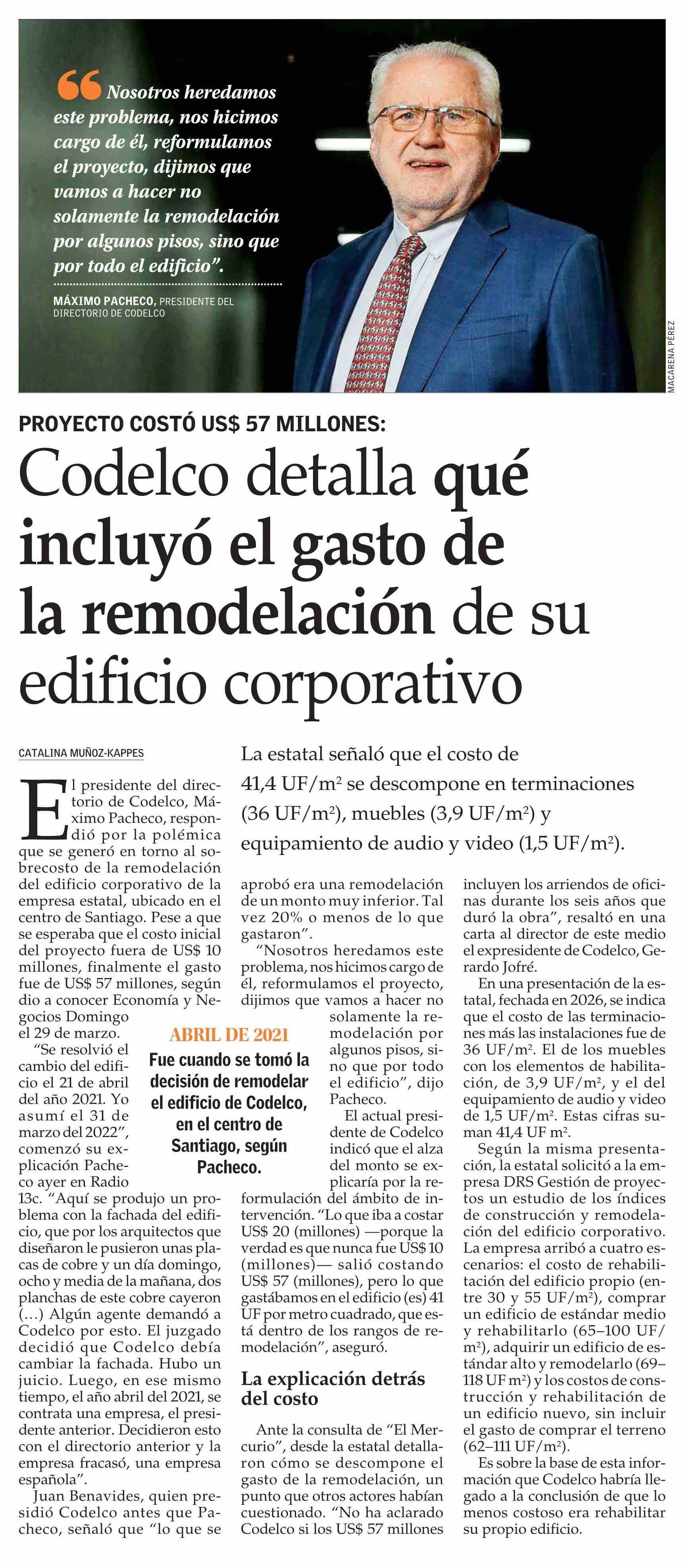 Codelco detalla qué incluyó el gasto de la remodelación de su edificio corporativo
