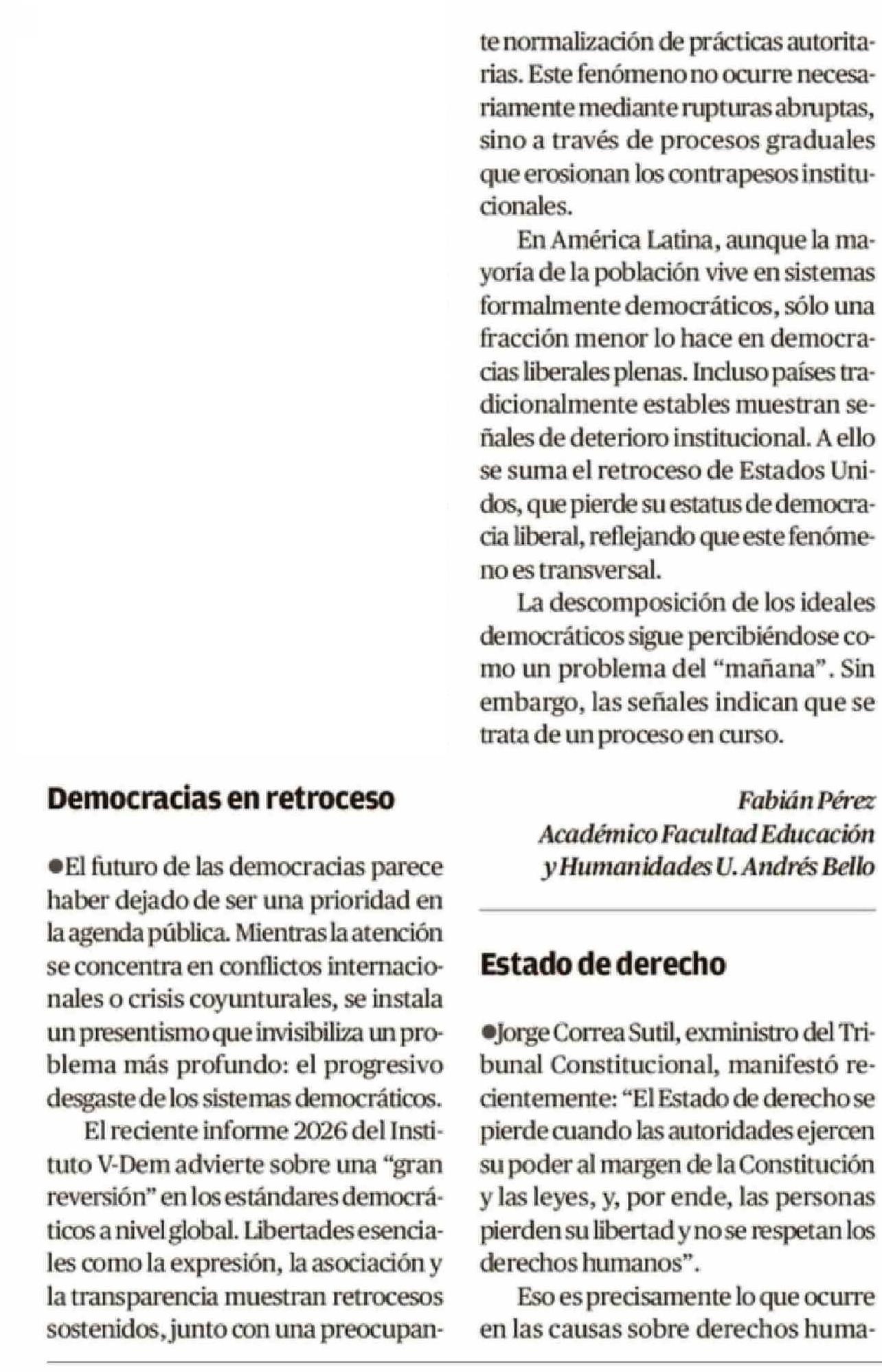 CARTAS: Democracias en retroceso
