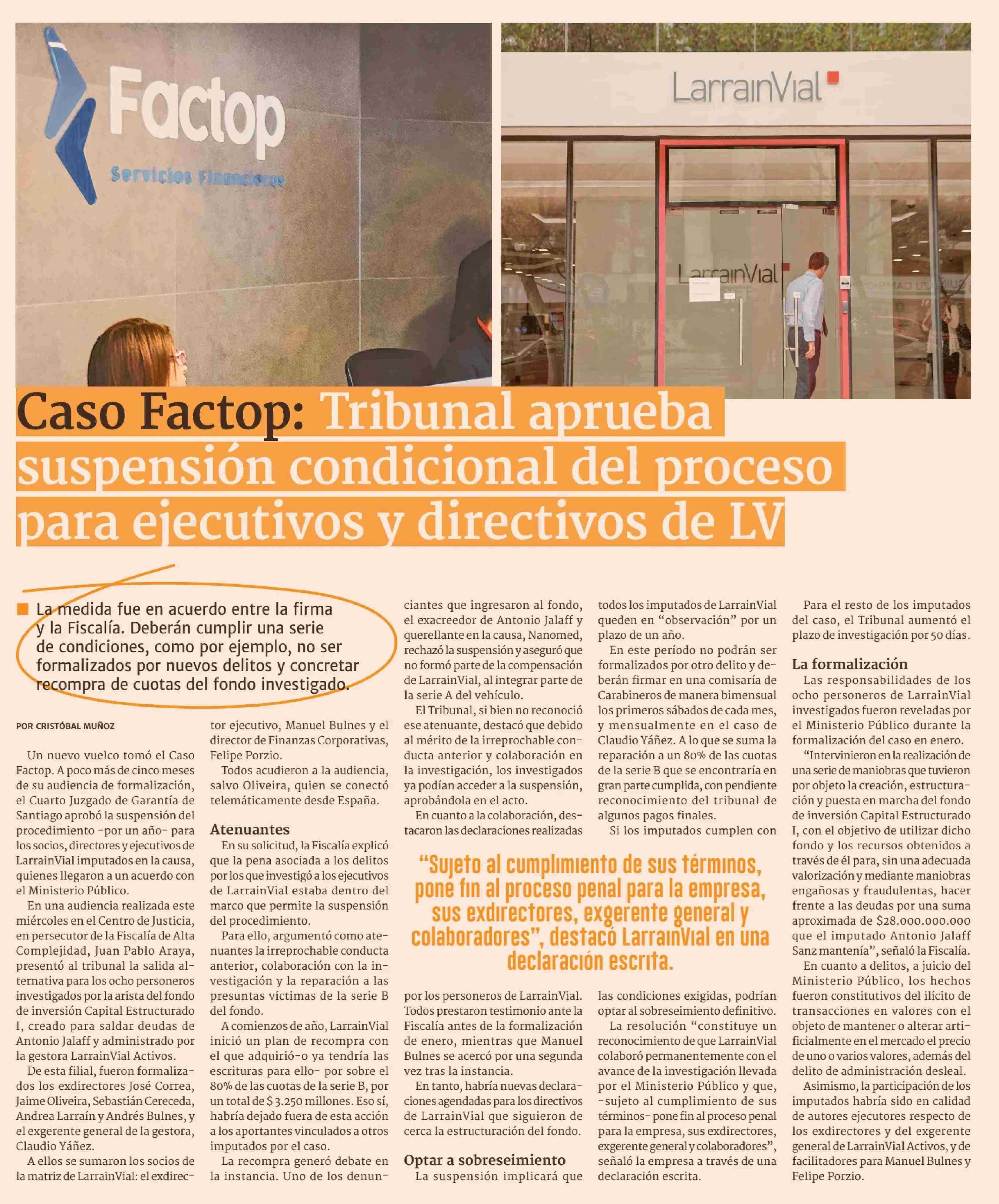 Caso Factop: Tribunal aprueba suspensión condicional del proceso para ejecutivos y directivos de LV