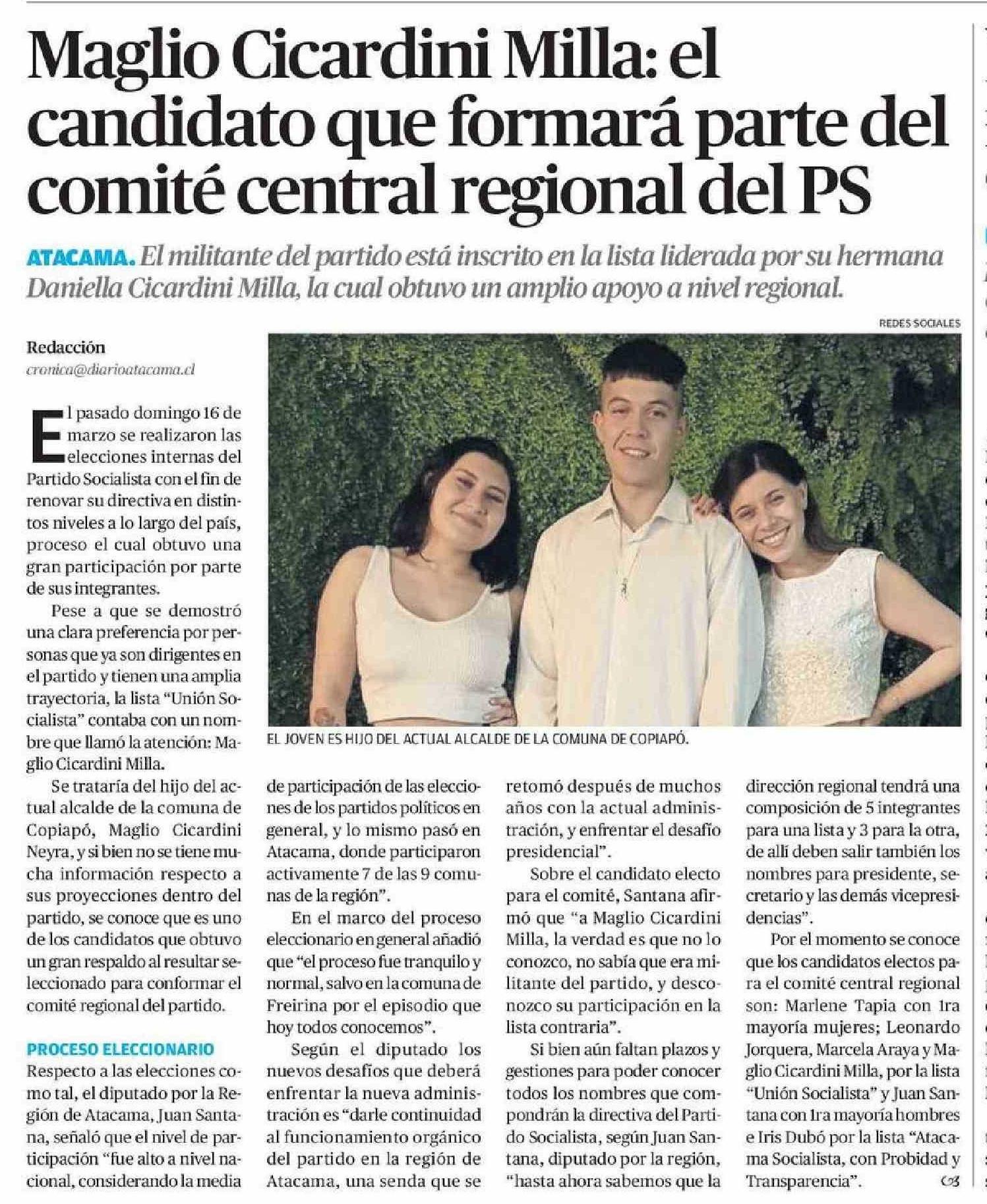 Maglio Cicardini Milla: el candidato que formará parte del comité central regional del PS