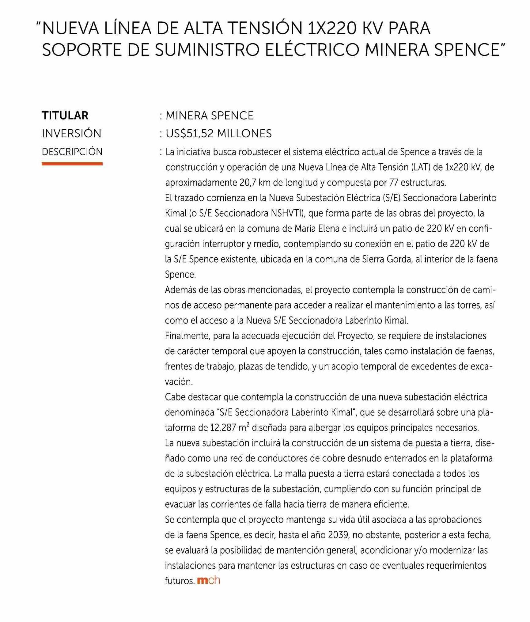 “NUEVA LÍNEA DE ALTA TENSIÓN 1X220 KV PARA SOPORTE DE SUMINISTRO ELÉCTRICO MINERA SPENCE”