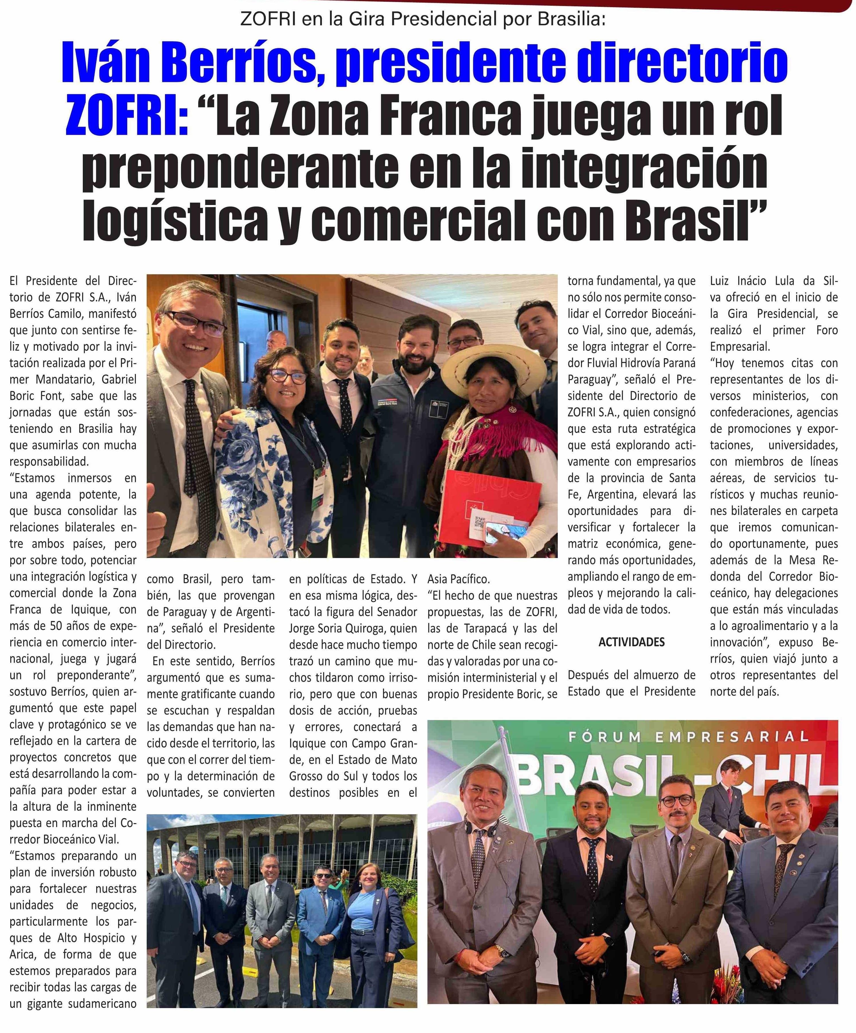 Iván Berríos, presidente directorio ZOFRI: “La Zona Franca juega un rol preponderante en la integración logística y comercial con Brasil”