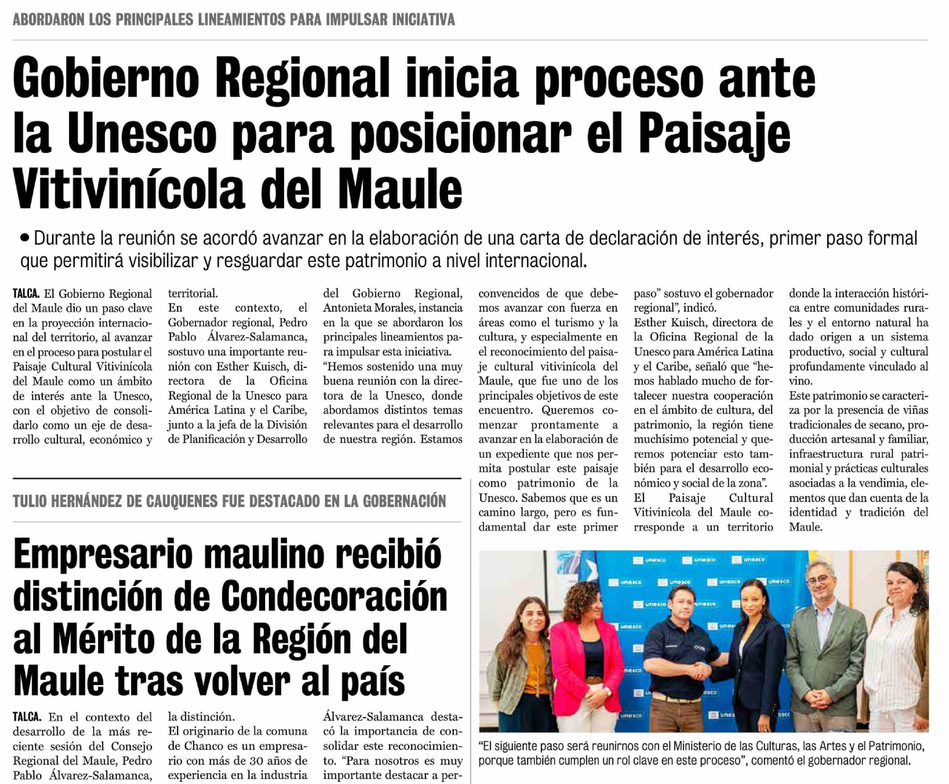 Gobierno Regional inicia proceso ante la Unesco para posicionar el Paisaje Vitivinícola del Maule