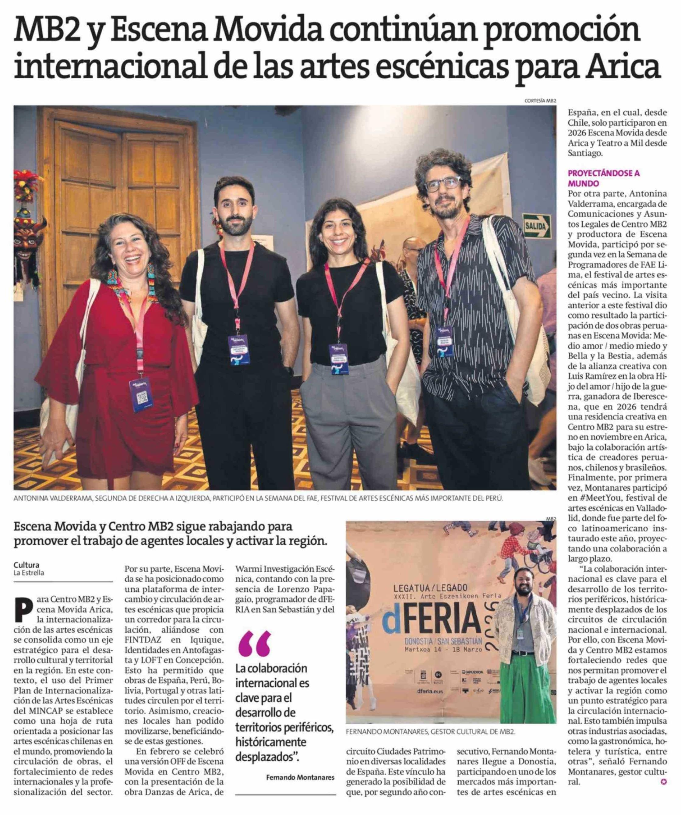 MB2 y Escena Movida continúan promoción internacional de las artes escénicas para Arica