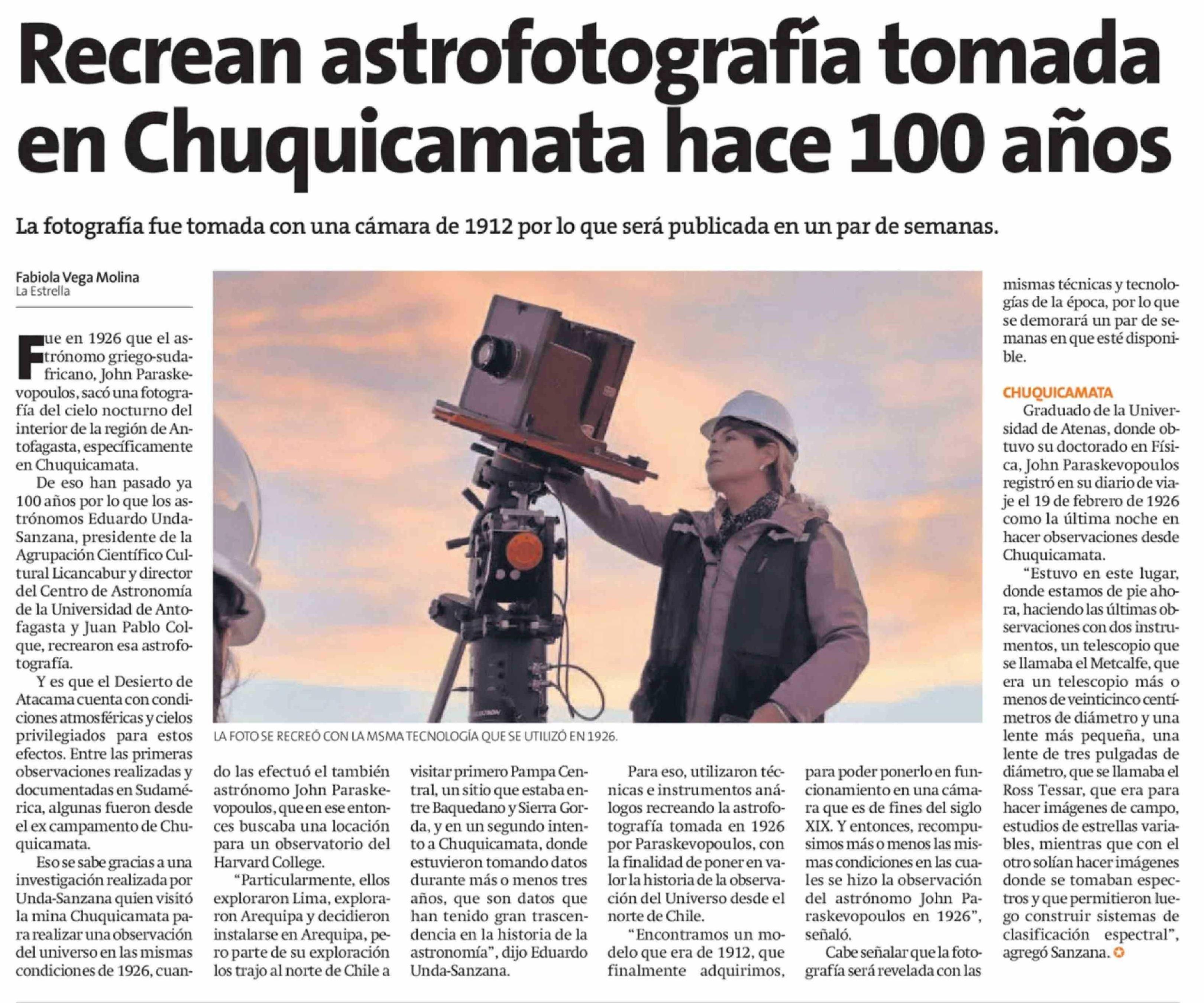 Recrean astrofotografía tomada en Chuquicamata hace 100 años