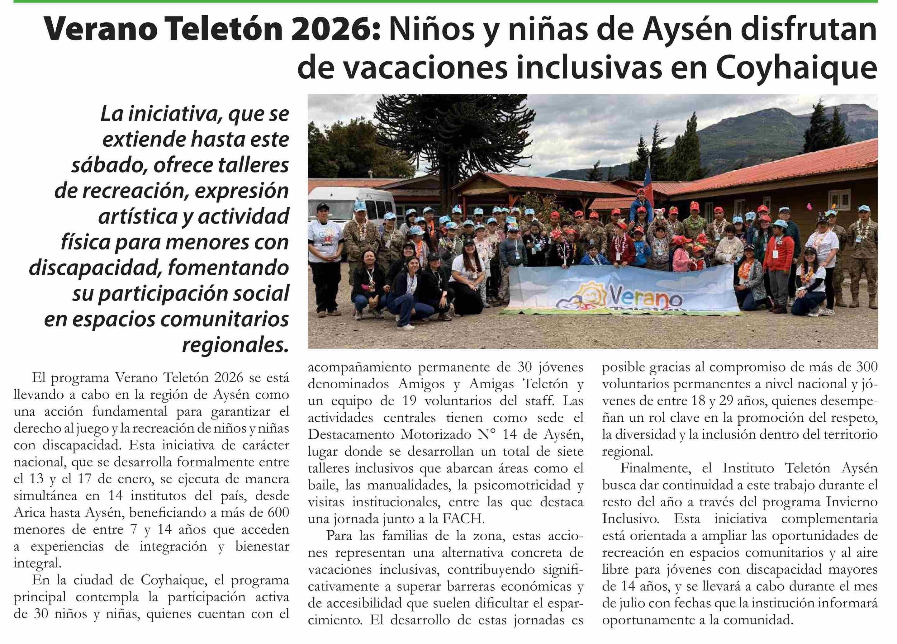 Verano Teletón 2026: Niños y niñas de Aysén disfrutan de vacaciones inclusivas en Coyhaique