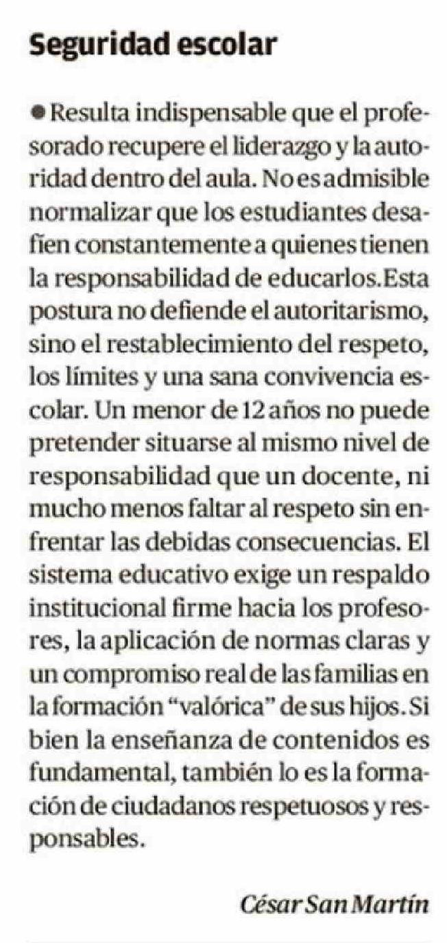 Cartas: Seguridad escolar