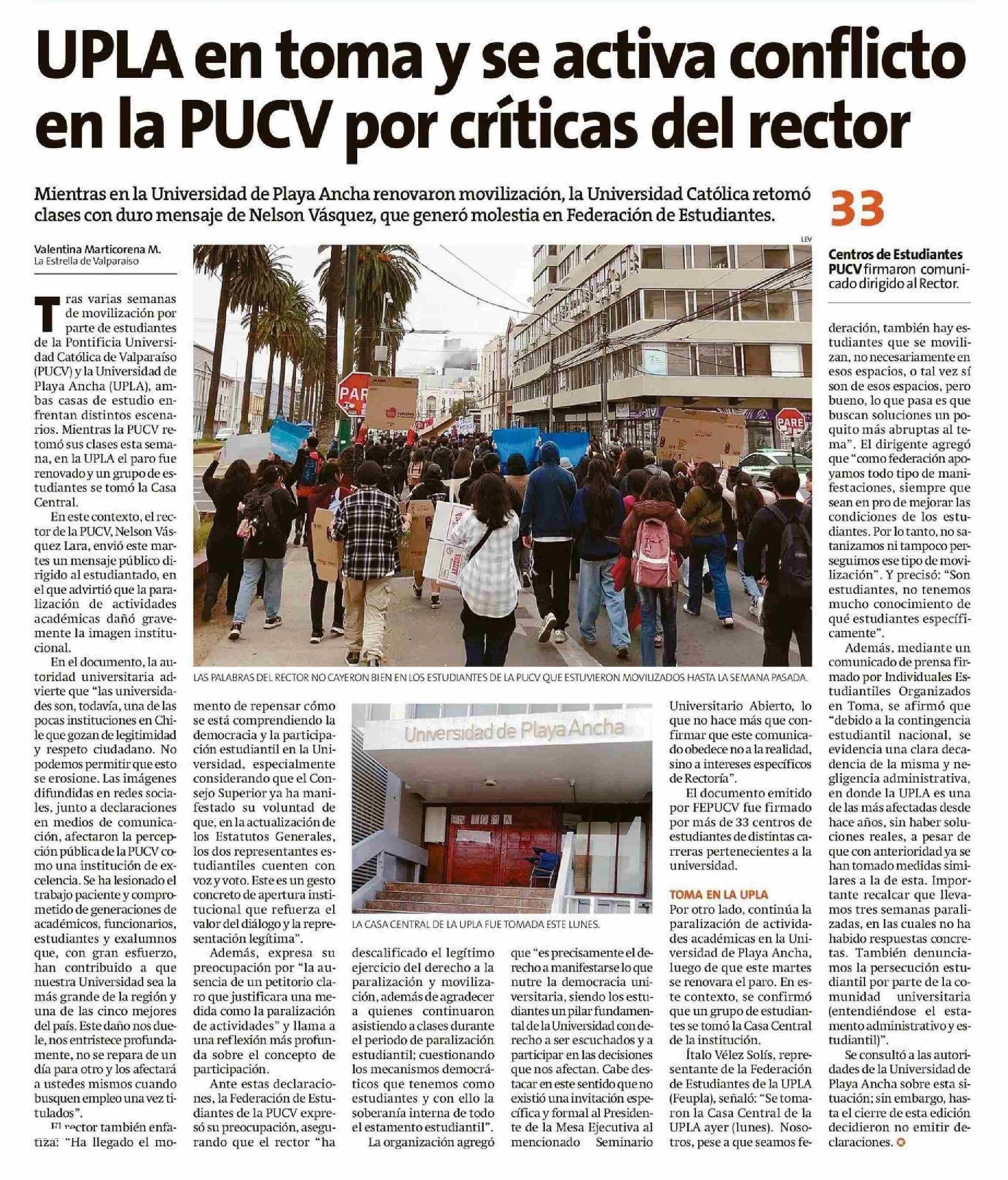UPLA en toma y se activa conflicto en la PUCV por críticas del rector