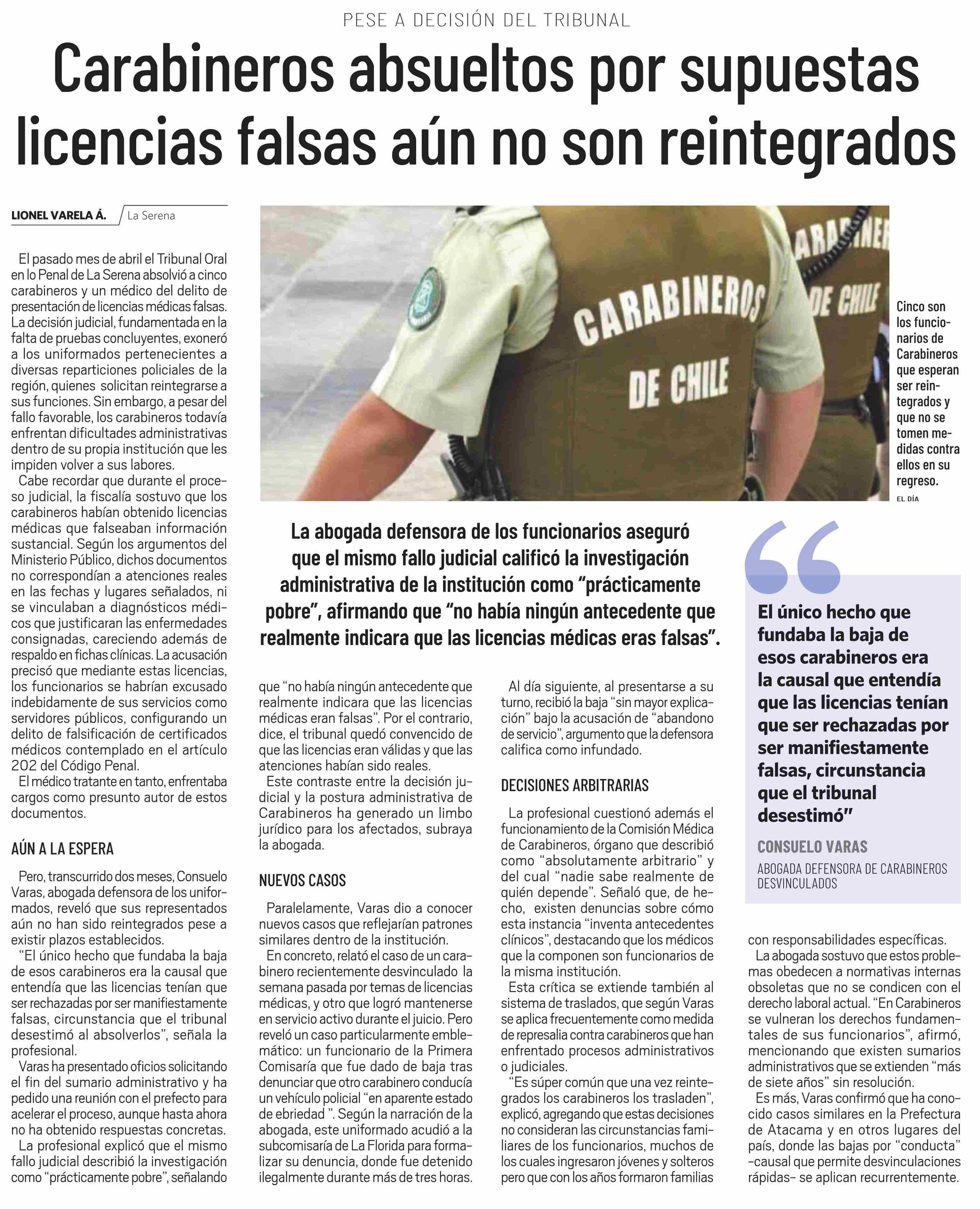 Carabineros absueltos por supuestas licencias falsas aún no son reintegrados