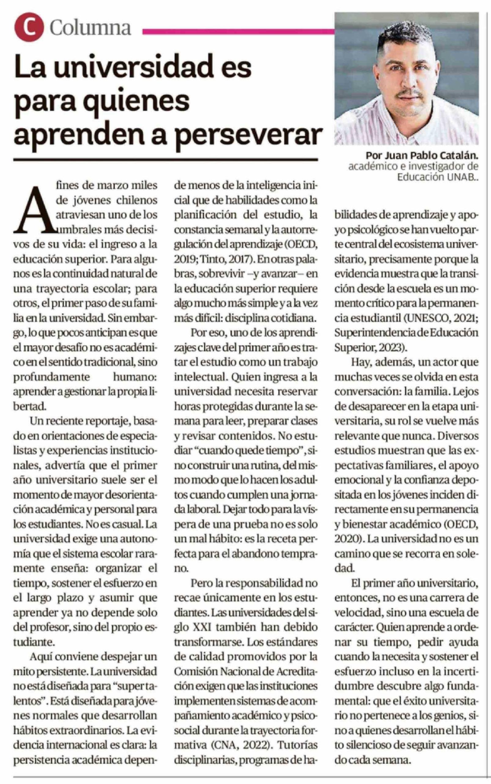 Columnas de Opinión: La universidad es para quienes aprenden a perseverar