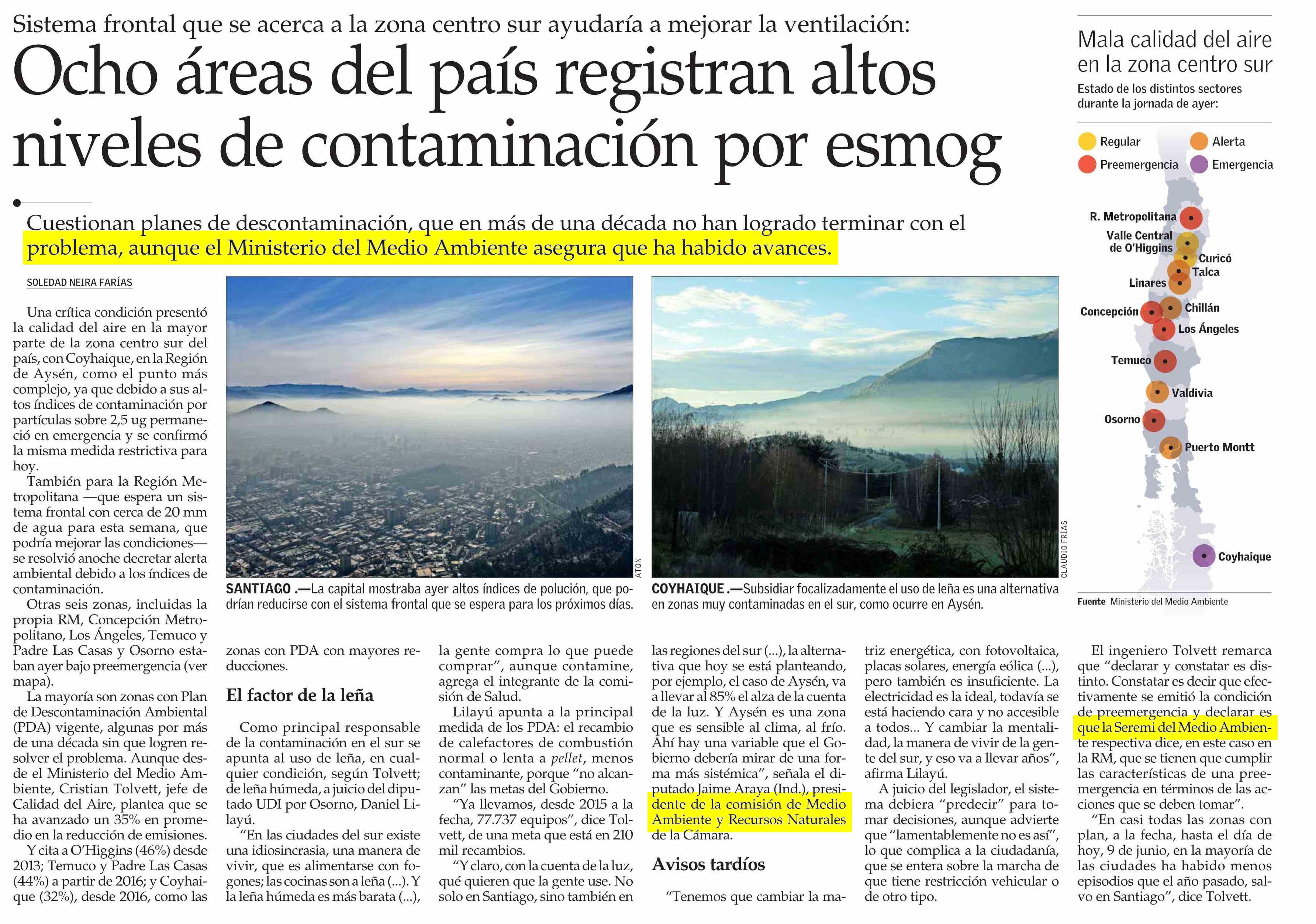 Ocho áreas del país registran altos niveles de contaminación por esmog