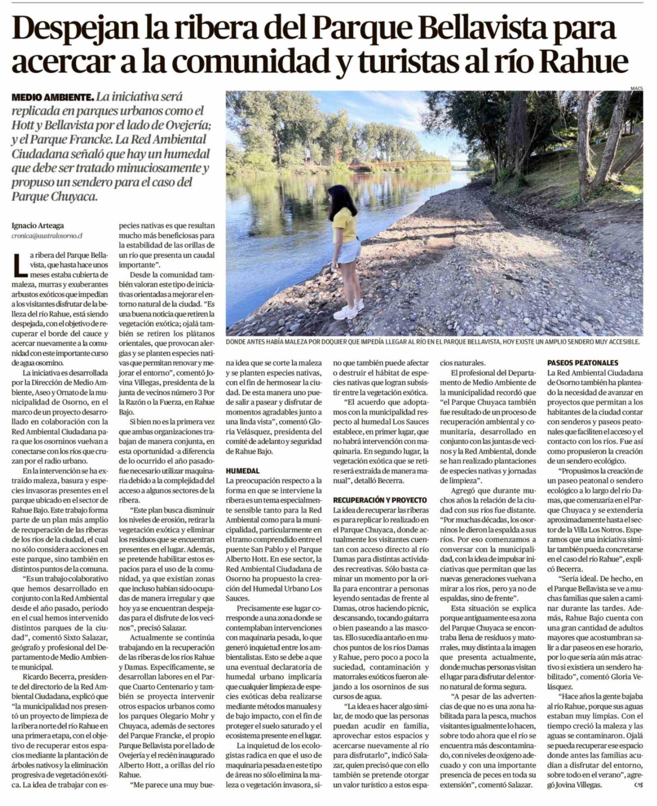 Despejan la ribera del Parque Bellavista para acercar a la comunidad y turistas al río Rahue