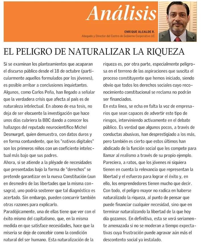 EL PELIGRO DE NATURALIZAR LA RIQUEZA