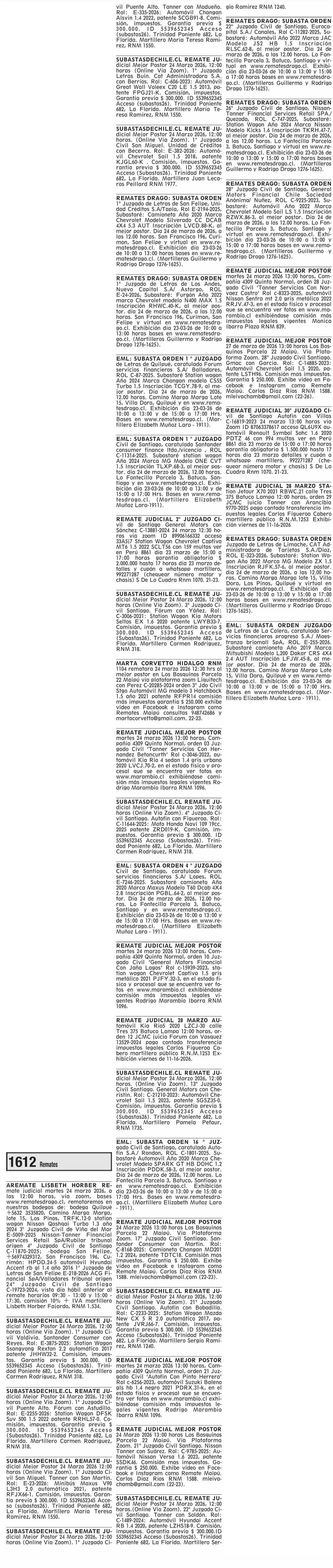 REMATES: 1612 REMATES